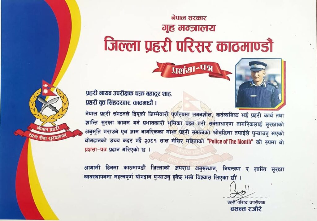 HomeAd-LandscapeAdsbar-6 जिल्ला प्रहरी परिसर काठमाण्डौ मधेश प्रदेश खवर December 24, 2024 164 0 ताजा / भरखरै प्राप्त गृहमन्त्री सुधन गुरुङ गृहमन्त्रालयबाट यसरी बिदा भए:- April 22, 2026 गृहमन्त्री गुरुङदारा गृहमन्त्रीको पदबाट राजीनामा:- April 22, 2026 सशस्त्र प्रहरी बल सुनसरीद्वारा लागु औषध गाँजा १६० केजी बरामद:- April 22, 2026 महासंघले गर्यो देशव्यापी दबाबमूलक अभियान सञ्चालन:- April 21, 2026 डीआईजीका नाममा उठाइन्छ तस्करी-सलामी दस्तुर, घुमुवा प्रहरी विवादले खुल्यो पोल :- April 21, 2026 Share FacebookTwitterPinterestWhatsApp Previous articleदर्ज्यानी चिन्ह सुशोभन कार्यक्रम सम्पन्न:-Next articleदर्ज्यानी चिन्ह सुशोभन कार्यक्रम सम्पन्न:- लोकप्रिय नागरिकता विधेयक प्रमाणीकरणप्रति राजनीतिक दलबाट मिश्रित प्रतिक्रिया, विराेधमा काठमाडाैंमा प्रदर्शन बिरगंज बाट केदारनाथ दर्शन गरी ऋषिकेश जादा ट्रक ले मिनी बसमा ठोकेको छ, भारतीय मिडिया अनुसार 2 जनाको घटनास्थलमा मृत्यु भएको छ भने 8... आज २०८०,२,१५,गते – गणतन्त्र दिवस,विभिन्न कार्यक्रम आयोजना गरी देशभर मनाइँदै,! Related Articles मधेश प्रदेश खवर - April 22, 2026गृहमन्त्री सुधन गुरुङ गृहमन्त्रालयबाट यसरी बिदा भए:- मधेश प्रदेश खवर - April 22, 2026गृहमन्त्री गुरुङदारा गृहमन्त्रीको पदबाट राजीनामा:- मधेश प्रदेश खवर - April 22, 2026सशस्त्र प्रहरी बल सुनसरीद्वारा लागु औषध गाँजा १६० केजी बरामद:-