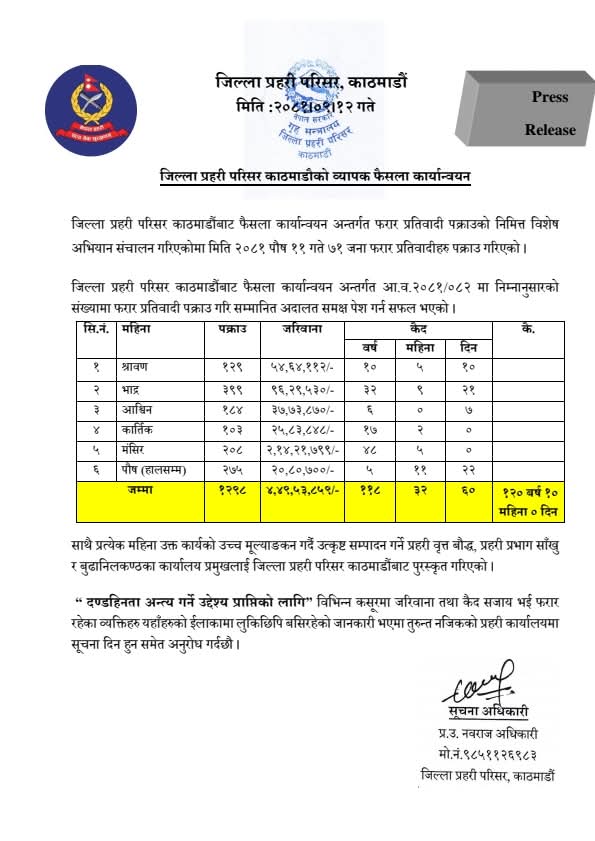 HomeAd-LandscapeAdsbar-6 जिल्ला प्रहरी परिसर काठमाडौको व्यापक फैसला कार्यान्वयन मधेश प्रदेश खवर December 28, 2024 115 0 ताजा / भरखरै प्राप्त सुदूरपश्चिम प्रदेश प्रहरी प्रमुखद्वारा कैलालीको भवन निरीक्षण सम्पन्न:- October 16, 2025 राैतहट र धनुषा जिल्लाका प्रहरी प्रमुख एसपी परिवर्तन:- October 16, 2025 जसपा नेपालका मधेश प्रदेशका सांसद कुशवाहा निलम्बित:- October 16, 2025 एसपी नरेश सुवेदीद्वारा जेनजी आन्दोलन क्रममा प्रदर्शनकारीहरूले लगेको सामानहरू फिर्ता ल्याइदिन आग्रह:- October 16, 2025 बारा प्रहरीद्वारा ५१ हजार बराबरको पटाका बरामद:- October 16, 2025 Share FacebookTwitterPinterestWhatsApp Previous articleसेना, सशस्त्र प्रहरी र नेपाल प्रहरीमा राजिनामाको लहर चलेका छन् ।Next articleभुपेन्द्र द्वारा अनुगमन तथा निरीक्षण कार्यक्रम सम्पन्न:- लोकप्रिय नागरिकता विधेयक प्रमाणीकरणप्रति राजनीतिक दलबाट मिश्रित प्रतिक्रिया, विराेधमा काठमाडाैंमा प्रदर्शन बिरगंज बाट केदारनाथ दर्शन गरी ऋषिकेश जादा ट्रक ले मिनी बसमा ठोकेको छ, भारतीय मिडिया अनुसार 2 जनाको घटनास्थलमा मृत्यु भएको छ भने 8... आज २०८०,२,१५,गते – गणतन्त्र दिवस,विभिन्न कार्यक्रम आयोजना गरी देशभर मनाइँदै,! Related Articles मधेश प्रदेश खवर - October 16, 2025सुदूरपश्चिम प्रदेश प्रहरी प्रमुखद्वारा कैलालीको भवन निरीक्षण सम्पन्न:- मधेश प्रदेश खवर - October 16, 2025राैतहट र धनुषा जिल्लाका प्रहरी प्रमुख एसपी परिवर्तन:- मधेश प्रदेश खवर - October 16, 2025जसपा नेपालका मधेश प्रदेशका सांसद कुशवाहा निलम्बित:-