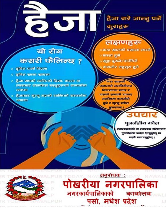 Homeप्रदेश सरकारमधेश हैजा मधेश प्रदेश खवर February 5, 2025 153 0 ताजा / भरखरै प्राप्त ठेकेदार हरिनारायण र पप्पु कन्स्ट्रक्सनविरुद्ध हरपतगञ्जका बासिन्दाहरुको आक्रोश :- April 28, 2026 यो तस्बिरले धेरै कुरा बोल्छ, जुन शब्दमा व्यक्त गर्न सकिँदैन:- April 28, 2026 तलब नपाएको छिपहरमाई गाउँपालिकाका कर्मचारीले गरे तला बन्दि:- April 27, 2026 सशस्त्र प्रहरीको महानिरीक्षकपदमा नारायणदत्त पौडेल नियुक्त:- April 27, 2026 भन्सार छली गरी ल्याइँदै गरेको सामान बारा प्रहरीको नियन्त्रणमा:- April 26, 2026 Share FacebookTwitterPinterestWhatsApp Previous articleहैजाNext articleगर्मीका कारण हुने बिमारीका लक्षणहरु लोकप्रिय नागरिकता विधेयक प्रमाणीकरणप्रति राजनीतिक दलबाट मिश्रित प्रतिक्रिया, विराेधमा काठमाडाैंमा प्रदर्शन बिरगंज बाट केदारनाथ दर्शन गरी ऋषिकेश जादा ट्रक ले मिनी बसमा ठोकेको छ, भारतीय मिडिया अनुसार 2 जनाको घटनास्थलमा मृत्यु भएको छ भने 8... आज २०८०,२,१५,गते – गणतन्त्र दिवस,विभिन्न कार्यक्रम आयोजना गरी देशभर मनाइँदै,! Related Articles मधेश प्रदेश खवर - April 28, 2026ठेकेदार हरिनारायण र पप्पु कन्स्ट्रक्सनविरुद्ध हरपतगञ्जका बासिन्दाहरुको आक्रोश :- मधेश प्रदेश खवर - April 28, 2026यो तस्बिरले धेरै कुरा बोल्छ, जुन शब्दमा व्यक्त गर्न सकिँदैन:- मधेश प्रदेश खवर - April 27, 2026तलब नपाएको छिपहरमाई गाउँपालिकाका कर्मचारीले गरे तला बन्दि:-