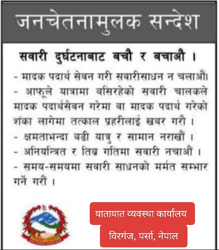 Homeप्रदेश सरकारमधेश जनचेतनामुलक सन्देश मधेश प्रदेश खवर March 9, 2025 183 0 ताजा / भरखरै प्राप्त तलब नपाएको छिपहरमाई गाउँपालिकाका कर्मचारीले गरे तला बन्दि:- April 27, 2026 सशस्त्र प्रहरीको महानिरीक्षकपदमा नारायणदत्त पौडेल नियुक्त:- April 27, 2026 भन्सार छली गरी ल्याइँदै गरेको सामान बारा प्रहरीको नियन्त्रणमा:- April 26, 2026 राैतहट जिल्लाको सीमा क्षेत्र तस्करीमा उच्च अधिकारीको संलग्नता :- April 26, 2026 माननीय बिश्वराज पोखरेलले स्कुलका हेडसरलाई थर्काएको हो:- April 25, 2026 Oplus_131072 Share FacebookTwitterPinterestWhatsApp Previous articleराैतहटको सदरमुकामको घन्टाघरमा आगो बलेको छ ।राइस मिलको जग्गाको विषयलाई लिएर यतिखेर गौरमा आगो बलिरहेको देखिएको तस्बिरमा ।Next articleइस्लामिक मान्यताअनुसार रमजान महिनामा रोजा लोकप्रिय नागरिकता विधेयक प्रमाणीकरणप्रति राजनीतिक दलबाट मिश्रित प्रतिक्रिया, विराेधमा काठमाडाैंमा प्रदर्शन बिरगंज बाट केदारनाथ दर्शन गरी ऋषिकेश जादा ट्रक ले मिनी बसमा ठोकेको छ, भारतीय मिडिया अनुसार 2 जनाको घटनास्थलमा मृत्यु भएको छ भने 8... आज २०८०,२,१५,गते – गणतन्त्र दिवस,विभिन्न कार्यक्रम आयोजना गरी देशभर मनाइँदै,! Related Articles मधेश प्रदेश खवर - April 27, 2026तलब नपाएको छिपहरमाई गाउँपालिकाका कर्मचारीले गरे तला बन्दि:- मधेश प्रदेश खवर - April 27, 2026सशस्त्र प्रहरीको महानिरीक्षकपदमा नारायणदत्त पौडेल नियुक्त:- मधेश प्रदेश खवर - April 26, 2026भन्सार छली गरी ल्याइँदै गरेको सामान बारा प्रहरीको नियन्त्रणमा:-