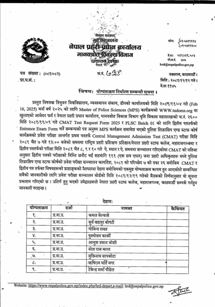 Homeप्रदेश सरकारबागमती नेपाल प्रहरीमा सुरु भएको स्टाफ कलेजका लागि सञ्चालित मास्टर्स इन पोलिटिकर साइन्स (एमपीएस) परिक्षाको नतिजा सार्वजनिक गरेको छ।परिक्षामा सहभागी १११ जनामध्ये १७ जना मात्र उत्तीर्ण भएको प्रहरी प्रधान कार्यालयको मानवस्रोत विकास विभागले जनाएको छ । मधेश प्रदेश खवर April 2, 2025 88 0 ताजा / भरखरै प्राप्त ३ लाख ६० हजार बराबरको समान सहित पिकअप बारा प्रहरीको नियन्त्रणमा:- October 16, 2025 दरबन्दी सिरहा,कमाई बारामा: सईको तस्करी नेटवर्कलाई एसपीको साथ, October 16, 2025 सुपारी तस्करीमा सर्लाही सुरक्षाकर्मीहरुको पनि साथ:- October 16, 2025 ५० हजार बराबरको पटाका बारा प्रहरीको नियन्त्रणमा:- October 16, 2025 बंगलादेशमा सेनाका १५ वरिष्ठ अधिकारी पक्राउ काठमाडौँ । October 16, 2025 Share FacebookTwitterPinterestWhatsApp Previous articleपेस्तोल चलाएनन् वहाँले देखाए मात्रै हो:-Next articleआजदेखि काठमाडौं केन्द्रित आन्दोलन गर्दै शिक्षक महासंघ:- लोकप्रिय नागरिकता विधेयक प्रमाणीकरणप्रति राजनीतिक दलबाट मिश्रित प्रतिक्रिया, विराेधमा काठमाडाैंमा प्रदर्शन बिरगंज बाट केदारनाथ दर्शन गरी ऋषिकेश जादा ट्रक ले मिनी बसमा ठोकेको छ, भारतीय मिडिया अनुसार 2 जनाको घटनास्थलमा मृत्यु भएको छ भने 8... आज २०८०,२,१५,गते – गणतन्त्र दिवस,विभिन्न कार्यक्रम आयोजना गरी देशभर मनाइँदै,! Related Articles मधेश प्रदेश खवर - October 16, 2025३ लाख ६० हजार बराबरको समान सहित पिकअप बारा प्रहरीको नियन्त्रणमा:- मधेश प्रदेश खवर - October 16, 2025दरबन्दी सिरहा,कमाई बारामा: सईको तस्करी नेटवर्कलाई एसपीको साथ, मधेश प्रदेश खवर - October 16, 2025सुपारी तस्करीमा सर्लाही सुरक्षाकर्मीहरुको पनि साथ:-