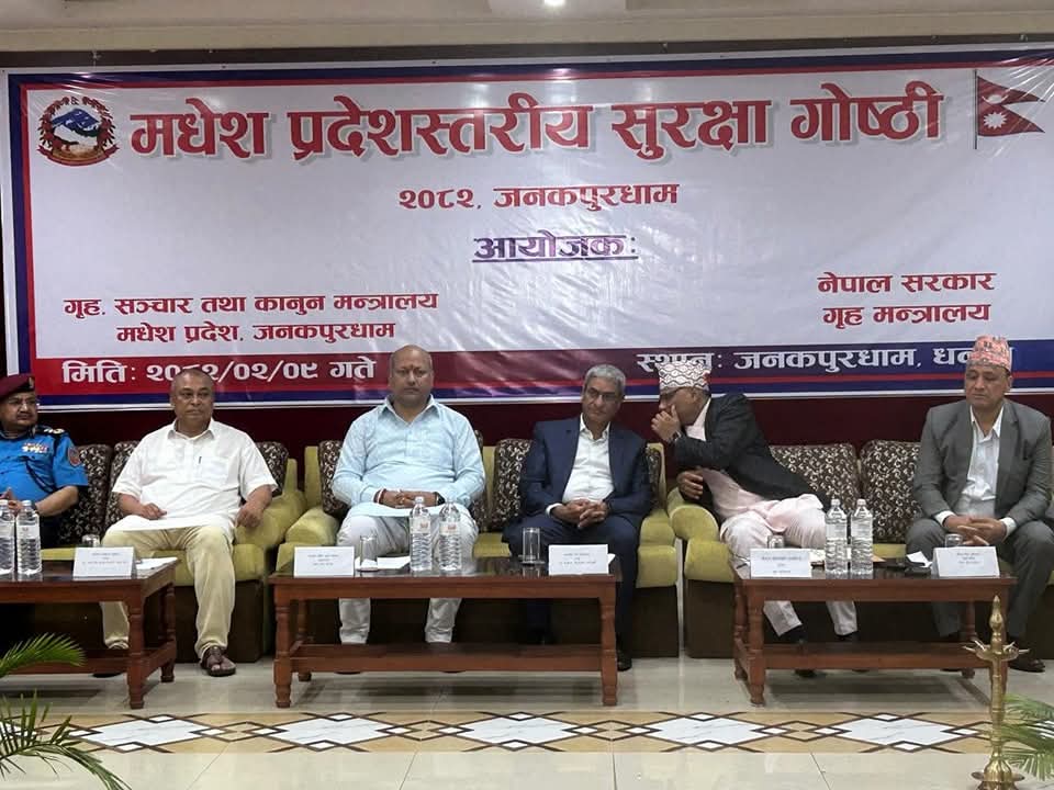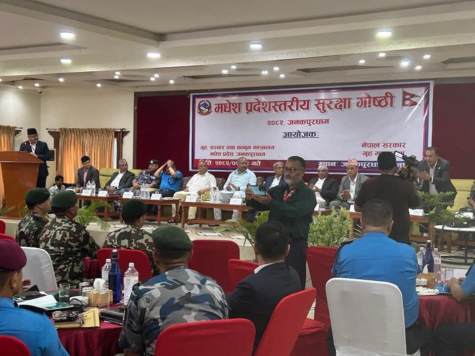 Homeप्रदेश सरकारमधेश नेपाल सरकार गृह मन्त्रालय र मधेश प्रदेश सरकारकाे गृह, सञचार तथा कानुन मन्त्रालयद्वारा आयोजित प्रदेशस्तरीय सुरक्षा गाेष्ठी । मधेश प्रदेश खवर May 23, 2025 218 0 ताजा / भरखरै प्राप्त भारतिय प्रहरीद्वारा एक महिला ५ केजी भन्दा बडी गाँजासहित पक्राउ:- February 2, 2026 भारतिय प्रहरीद्वारा एक महिला ५ केजी भन्दा बडी गाँजासहित पक्राउ:- February 2, 2026 चितवनमा दुर्गा प्रसाईका कार्यकरता र प्रहरीको चौविसकोठीमा भयो धकेला धकेल:- February 2, 2026 पर्सा निर्वाचन क्षेत्र नं.१ देखि चारसम्मका उमेदवारहरुसंग अन्तरक्रिया कार्यक्रम:- February 2, 2026 नेपाल प्रहरी निरीक्षक आधारभुत तालिम दीक्षान्त समारोह सम्पन्न:- February 2, 2026 Share FacebookTwitterPinterestWhatsApp Previous articleधनुषा जिल्लाको जनकपुरधामा रेल-मार्ग यात्रा:-Next articleतामाको तार चोरी प्रकरणमा दुई भारतीय नागरिक पक्राउ:- लोकप्रिय नागरिकता विधेयक प्रमाणीकरणप्रति राजनीतिक दलबाट मिश्रित प्रतिक्रिया, विराेधमा काठमाडाैंमा प्रदर्शन बिरगंज बाट केदारनाथ दर्शन गरी ऋषिकेश जादा ट्रक ले मिनी बसमा ठोकेको छ, भारतीय मिडिया अनुसार 2 जनाको घटनास्थलमा मृत्यु भएको छ भने 8... आज २०८०,२,१५,गते – गणतन्त्र दिवस,विभिन्न कार्यक्रम आयोजना गरी देशभर मनाइँदै,! Related Articles मधेश प्रदेश खवर - February 2, 2026भारतिय प्रहरीद्वारा एक महिला ५ केजी भन्दा बडी गाँजासहित पक्राउ:- मधेश प्रदेश खवर - February 2, 2026भारतिय प्रहरीद्वारा एक महिला ५ केजी भन्दा बडी गाँजासहित पक्राउ:- मधेश प्रदेश खवर - February 2, 2026चितवनमा दुर्गा प्रसाईका कार्यकरता र प्रहरीको चौविसकोठीमा भयो धकेला धकेल:-