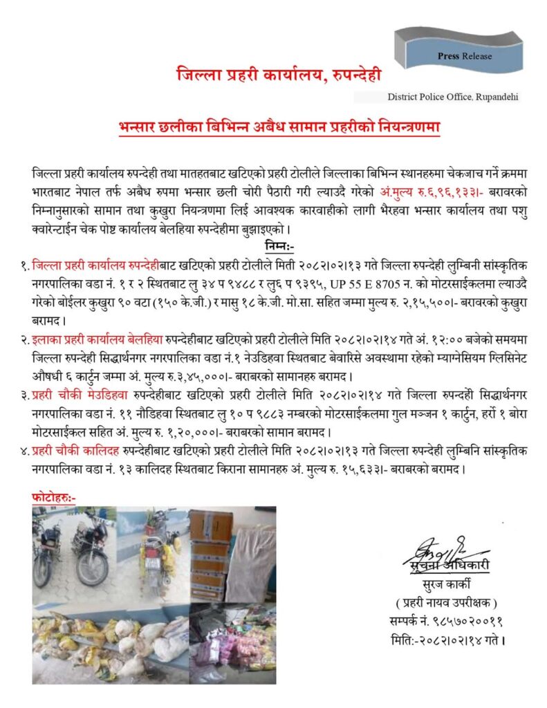 Homeप्रदेश सरकारप्रदेश १ मधेश प्रदेश खवर May 29, 2025 151 0 ताजा / भरखरै प्राप्त भारतिय प्रहरीद्वारा एक महिला ५ केजी भन्दा बडी गाँजासहित पक्राउ:- February 2, 2026 भारतिय प्रहरीद्वारा एक महिला ५ केजी भन्दा बडी गाँजासहित पक्राउ:- February 2, 2026 चितवनमा दुर्गा प्रसाईका कार्यकरता र प्रहरीको चौविसकोठीमा भयो धकेला धकेल:- February 2, 2026 पर्सा निर्वाचन क्षेत्र नं.१ देखि चारसम्मका उमेदवारहरुसंग अन्तरक्रिया कार्यक्रम:- February 2, 2026 नेपाल प्रहरी निरीक्षक आधारभुत तालिम दीक्षान्त समारोह सम्पन्न:- February 2, 2026 Share FacebookTwitterPinterestWhatsApp Previous articleNext articleसशस्त्र प्रहरीका डीआईजी ठाडा मगर एआईजीमा बढुवा:- लोकप्रिय नागरिकता विधेयक प्रमाणीकरणप्रति राजनीतिक दलबाट मिश्रित प्रतिक्रिया, विराेधमा काठमाडाैंमा प्रदर्शन बिरगंज बाट केदारनाथ दर्शन गरी ऋषिकेश जादा ट्रक ले मिनी बसमा ठोकेको छ, भारतीय मिडिया अनुसार 2 जनाको घटनास्थलमा मृत्यु भएको छ भने 8... आज २०८०,२,१५,गते – गणतन्त्र दिवस,विभिन्न कार्यक्रम आयोजना गरी देशभर मनाइँदै,! Related Articles मधेश प्रदेश खवर - February 2, 2026भारतिय प्रहरीद्वारा एक महिला ५ केजी भन्दा बडी गाँजासहित पक्राउ:- मधेश प्रदेश खवर - February 2, 2026भारतिय प्रहरीद्वारा एक महिला ५ केजी भन्दा बडी गाँजासहित पक्राउ:- मधेश प्रदेश खवर - February 2, 2026चितवनमा दुर्गा प्रसाईका कार्यकरता र प्रहरीको चौविसकोठीमा भयो धकेला धकेल:-