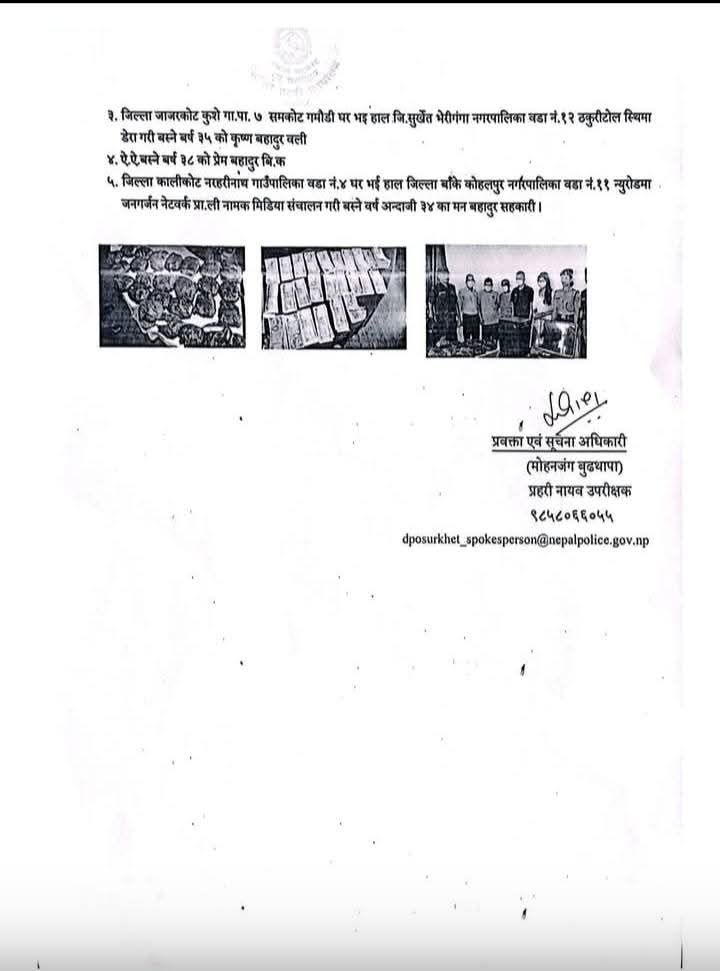 Homeप्रदेश सरकारकर्णाली जिल्ला प्रहरी कार्यालय सुर्खेतद्वारा नक्कली नोट सहित ५ जना पक्राउ:- मधेश प्रदेश खवर July 16, 2025 211 0 ताजा / भरखरै प्राप्त प्रहरीको दाँत झारदिने वडाध्यक्ष छोटेलाल प्रहरीद्वारा पक्राउ:- October 8, 2025 जात्रामा बाजा बजाउँदै नेवार समुदायहाडिगाँउ जात्रामा ब्रह्मा, विष्णु र महेश्वर भगवानको पूजा आराधना गरी रथलाई हाडिगाँउ घुमाउने क्रममा बाजा बजाउँदै नेवार समुदाय । हरेक... October 8, 2025 ७८ लाख घुस डिल अडियो सार्वजनिक प्रकरण:- October 8, 2025 पर्सा प्रहरीद्वारा खुनी दरिन्दे मुख्य योजनाकार गिरी भारतबाट पक्राउ:- October 8, 2025 October 8, 2025 Share FacebookTwitterPinterestWhatsApp Previous articleसशस्त्रको डीआईजीमा मनिष थापालाई बढुवा गर्न सिफारिस:-Next articleसशस्त्र प्रहरीका डीएसपी सुब्बा सरुवा हुँदाहुँदै गरे धामाका:- लोकप्रिय नागरिकता विधेयक प्रमाणीकरणप्रति राजनीतिक दलबाट मिश्रित प्रतिक्रिया, विराेधमा काठमाडाैंमा प्रदर्शन बिरगंज बाट केदारनाथ दर्शन गरी ऋषिकेश जादा ट्रक ले मिनी बसमा ठोकेको छ, भारतीय मिडिया अनुसार 2 जनाको घटनास्थलमा मृत्यु भएको छ भने 8... आज २०८०,२,१५,गते – गणतन्त्र दिवस,विभिन्न कार्यक्रम आयोजना गरी देशभर मनाइँदै,! Related Articles मधेश प्रदेश खवर - October 8, 2025प्रहरीको दाँत झारदिने वडाध्यक्ष छोटेलाल प्रहरीद्वारा पक्राउ:- मधेश प्रदेश खवर - October 8, 2025जात्रामा बाजा बजाउँदै नेवार समुदायहाडिगाँउ जात्रामा ब्रह्मा, विष्णु र महेश्वर भगवानको पूजा आराधना गरी रथलाई हाडिगाँउ घुमाउने क्रममा बाजा बजाउँदै नेवार समुदाय । हरेक... मधेश प्रदेश खवर - October 8, 2025७८ लाख घुस डिल अडियो सार्वजनिक प्रकरण:-