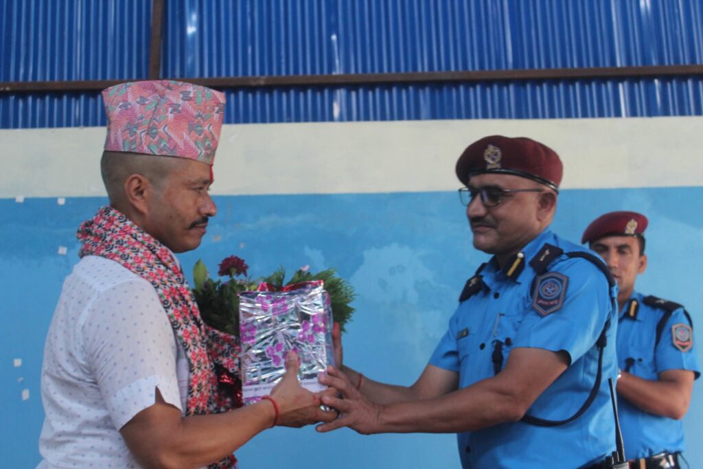 नेपाल प्रहरी प्रधान कार्यालय कर्मचारी प्रशासन शाखाको पत्रादेशानुसार यस कार्यालयबाट काज सरुवा भई नेपाल प्रहरी प्रधान कार्यालय जनसम्पर्क शाखामा जान लाग्नु भएका प्रहरी उपरीक्षक हरिहर नाथ योगीज्यूलाई एक समारोहका बींच विदाई तथा शुभकामना कार्यक्रम सम्पन्न भएको छ।