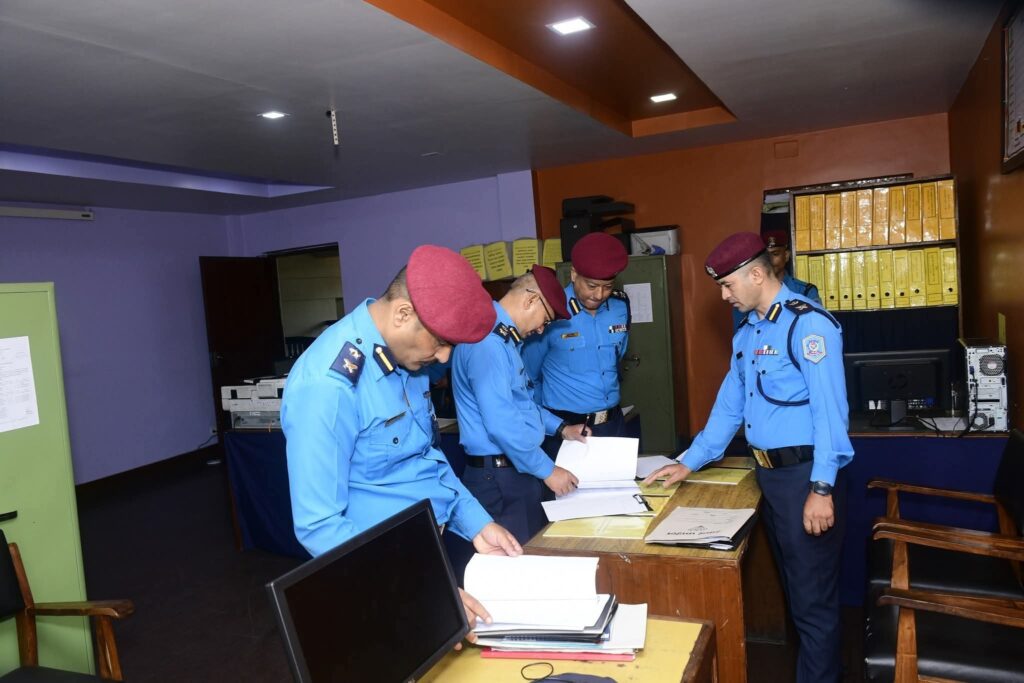 “कार्यदक्षता मूल्याङकन (Police Baton) २०८२” केन्द्रीय मूल्याङ्कन समितिका संयोजक प्रहरी अतिरिक्त महानिरीक्षक डा. मनोज के.सी. सहितको मूल्याङकन टोलीबाट कार्यालयको निरीक्षण तथा अनुगमन गरिएको हो ।