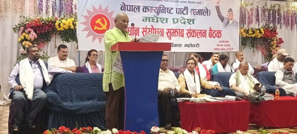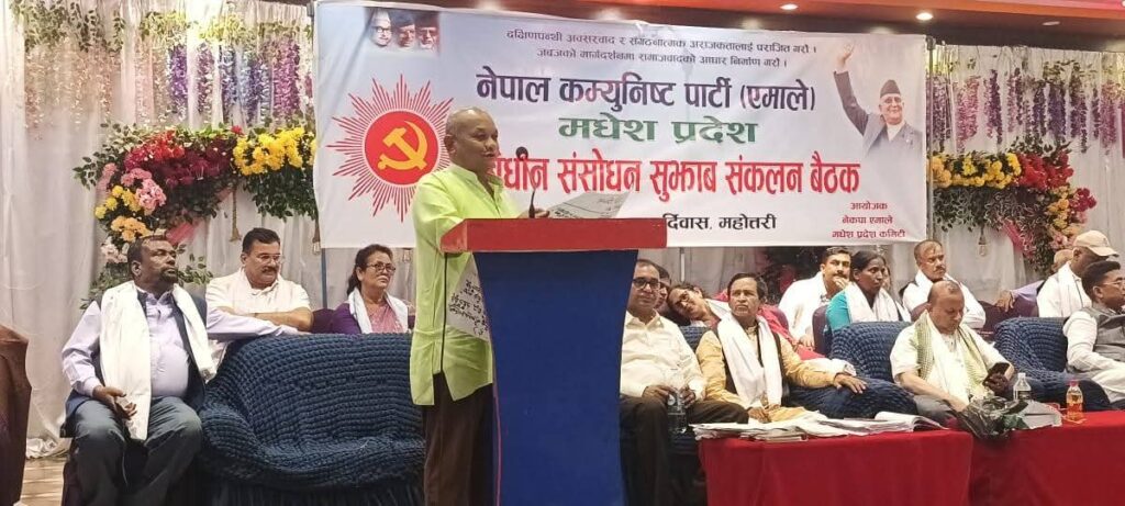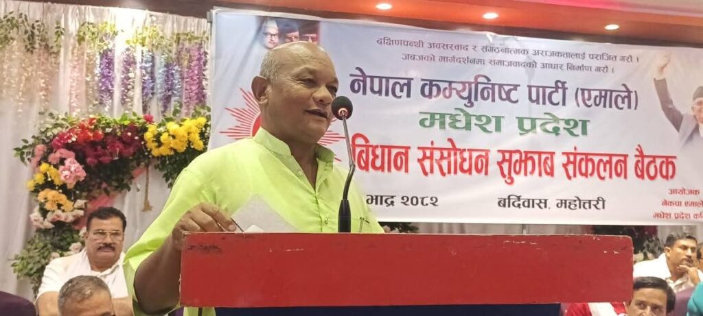 नेपाल कम्युनिष्ट पार्टी (एमाले) मधेश प्रदेश विधान संशोधन सुझाव संकलन बैठक बर्दिवासमा पर्सा जिल्लाको तर्फबाट समुह नेता मधेश प्रदेश कमिटीको सचिवालय सदस्य एवं संबिधान सभा सदस्य पर्सा 4 को जयप्रकाश थारु मधेस प्रदेश कमिटीको सचिवालयको बैठकमा विधान संशोधन को बारेमा आफ्नो धारणा राखी सर्वसहमत निर्णय गरि सकेको र मधेश प्रदेश कमिटीको उपाध्यक्ष एवं संविधान सभा सदस्य विचारी यादव सचिवालयको बैठकमा उपस्थित नरहे ता पनि सचिवालयको निर्णयमा सहमति जनाएको बाकि मधेश प्रदेश कमिटीको सदस्यहरू र सल्लाहकार कमिटीका सदस्यहरू आफनो बिचार दिई बुन्दागत रुपमा लेखिएका सुझावहरु पर्सा जिल्ला को तर्फ बाट समुह नेता जयप्रकाश थारुज्यूको सुझाव वाचन गर्दै गरेको तस्बिरहरू ।