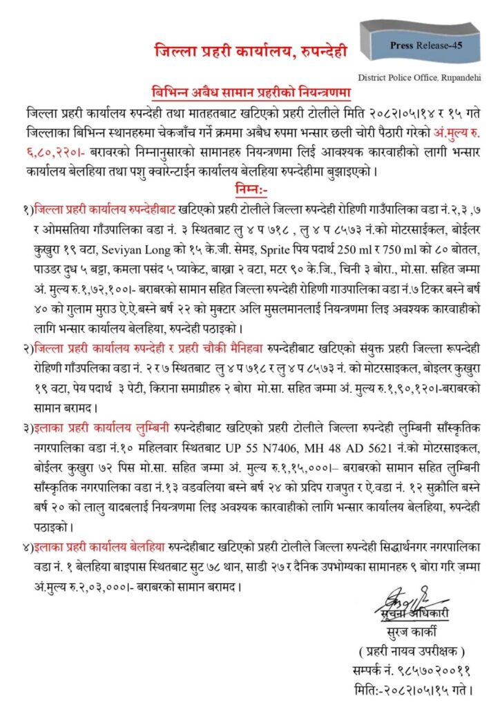 Homeप्रदेश सरकारप्रदेश १ मधेश प्रदेश खवर September 1, 2025 135 0 ताजा / भरखरै प्राप्त पाइलट अभावले इन्डिगोका सय उडान रद्द विमानस्थलमा हजारौं यात्रु अलपत्र:- December 4, 2025 द:खद खवर-मोटरसाइकल दुर्घटनामा सहायक प्रहरी हबल्दारको मृत्यु:- December 4, 2025 सर्लाही जिल्लामा संगठित तस्करी, घुमुवाहरुको गोप्य सेटिङ नेटवर्क:- December 4, 2025 प्रहरीद्वारा पाल्पामा ६० क्वीन्टल अवैध युरिया मल बरामद:- December 4, 2025 काठमाडौंको धोबी खोलामा भेटिएको शवको पहिचान खुल्यो:- December 4, 2025 Share FacebookTwitterPinterestWhatsApp Previous articleमुख्यमन्त्री बानियाँद्वारा दुई जना एसपी सम्मानित:-Next articleप्रहरी बृत्त थानकोटको नवनिर्मित भवनको उद्धाटन कार्यक्रम सम्पन्न:- लोकप्रिय नागरिकता विधेयक प्रमाणीकरणप्रति राजनीतिक दलबाट मिश्रित प्रतिक्रिया, विराेधमा काठमाडाैंमा प्रदर्शन बिरगंज बाट केदारनाथ दर्शन गरी ऋषिकेश जादा ट्रक ले मिनी बसमा ठोकेको छ, भारतीय मिडिया अनुसार 2 जनाको घटनास्थलमा मृत्यु भएको छ भने 8... आज २०८०,२,१५,गते – गणतन्त्र दिवस,विभिन्न कार्यक्रम आयोजना गरी देशभर मनाइँदै,! Related Articles मधेश प्रदेश खवर - December 4, 2025पाइलट अभावले इन्डिगोका सय उडान रद्द विमानस्थलमा हजारौं यात्रु अलपत्र:- मधेश प्रदेश खवर - December 4, 2025द:खद खवर-मोटरसाइकल दुर्घटनामा सहायक प्रहरी हबल्दारको मृत्यु:- मधेश प्रदेश खवर - December 4, 2025सर्लाही जिल्लामा संगठित तस्करी, घुमुवाहरुको गोप्य सेटिङ नेटवर्क:-