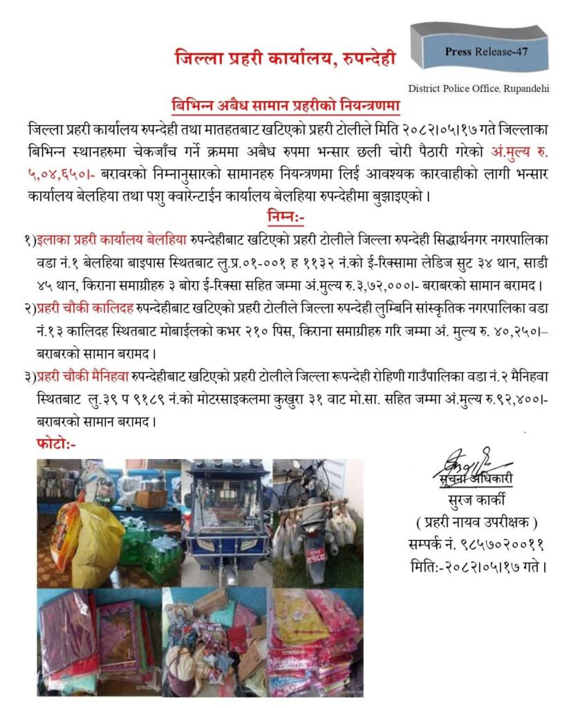 Homeप्रदेश सरकारप्रदेश १ मधेश प्रदेश खवर September 3, 2025 157 0 ताजा / भरखरै प्राप्त बिहारमा २५ लाख नक्कली नोटसहित १० जना भारतिय प्रहरीद्वारा पक्राउ:- February 1, 2026 मकवानपुर प्रहरीद्वारा खैरो हेरोइन र ट्रामाडोलसहित सात जना पक्राउ:- February 1, 2026 २०२६ मा सहभागीहुने प्रहरीको महिलाभलिबल टोलिलाई आईजीपी गरे बिदाइ:- February 1, 2026 नवाजको ५ विकेटमा अस्ट्रेलियासँगको शृंखला पाकिस्तानले गर्यो ‘क्लिन-स्वीप’ February 1, 2026 महोत्तरीको खयरबनी नाकासुरक्षा निकायकै छत्रछायाँमा तीन सातादेखि करोडौँको तस्करी: February 1, 2026 Share FacebookTwitterPinterestWhatsApp Previous articleसशस्त्र प्रहरीद्वारा बाँकेमा अवैध औषधी बरामद:-Next articleइलाका प्रहरी कार्यालय आँबुखैरेनी तनहुँ तथा मातहत समेतबाट सम्पादन हुने विभिन्न गतिविधिहरुलाई थप व्यवस्थित, परिस्कृत तथा विश्वासयोग्य बनाउन इलाका प्रहरी कार्यालय आँबुखैरेनीका प्रहरी निरीक्षक टेक प्रसाद सुवेदीले मातहत प्रहरी कार्यालयहरु प्रहरी चौकी डुम्रे तनहुँ र अस्थाई प्रहरी पोष्ट मुग्लिङ पुलजिप तनहुँका प्रमुखहरुसँग कार्य सम्पादन सम्झौता भएको छ । लोकप्रिय नागरिकता विधेयक प्रमाणीकरणप्रति राजनीतिक दलबाट मिश्रित प्रतिक्रिया, विराेधमा काठमाडाैंमा प्रदर्शन बिरगंज बाट केदारनाथ दर्शन गरी ऋषिकेश जादा ट्रक ले मिनी बसमा ठोकेको छ, भारतीय मिडिया अनुसार 2 जनाको घटनास्थलमा मृत्यु भएको छ भने 8... आज २०८०,२,१५,गते – गणतन्त्र दिवस,विभिन्न कार्यक्रम आयोजना गरी देशभर मनाइँदै,! Related Articles मधेश प्रदेश खवर - February 1, 2026बिहारमा २५ लाख नक्कली नोटसहित १० जना भारतिय प्रहरीद्वारा पक्राउ:- मधेश प्रदेश खवर - February 1, 2026मकवानपुर प्रहरीद्वारा खैरो हेरोइन र ट्रामाडोलसहित सात जना पक्राउ:- मधेश प्रदेश खवर - February 1, 2026२०२६ मा सहभागीहुने प्रहरीको महिलाभलिबल टोलिलाई आईजीपी गरे बिदाइ:-