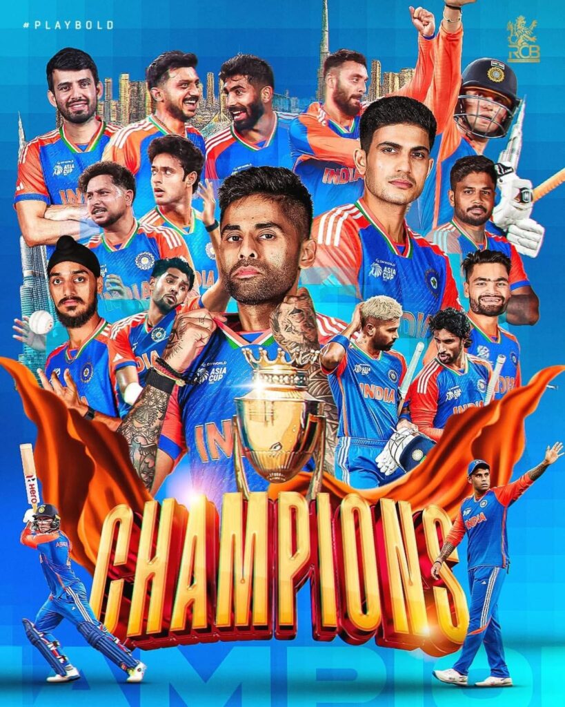 भारतले एसिया कप क्रिकेट २०२५ को उपाधि जितेको छ । आइतबार दुबईमा भएको फाइनलमा पाकिस्तानलाई ५ विकेटले हराउँदै भारतले नवौंपटक उपाधि जितेको हो ।पाकिस्तानले दिएको १४७ रनको लक्ष्य भारतले २ बल बाँकी छँदा ५ विकेटको क्षतिमा भेट्टायो । अन्तिम ओभरमा १० रन आवश्यक रहँदा तिलकले एक चौका र ३ रन तथा रिंकु सिंहले एक विजयी चौका प्रहार गरे ।