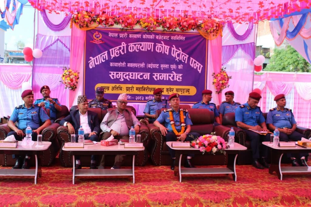 प्रहरी महानिरीक्षक चन्द्र कुबेर खापुङ्गले नवनिर्मित प्रहरी कल्याण कोष पेट्रोल पम्प कावासोतीको आइतबार एक कार्यक्रमबीच उद्‌घाटन गर्नुभएको छ । साथै उहाँले उक्त नवनिर्मित पेट्रोल पम्प तथा भवनको निरीक्षण गर्नुका साथै कार्यालय परिसरमा वृक्षारोपण समेत गर्नुभयो ।