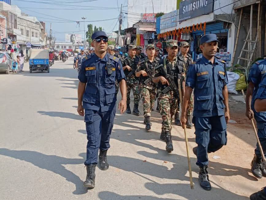 सर्लाहीमा प्रहरी सशस्त्र प्रहरी सेनासहित संयुक्त गस्ती सुरू:-
