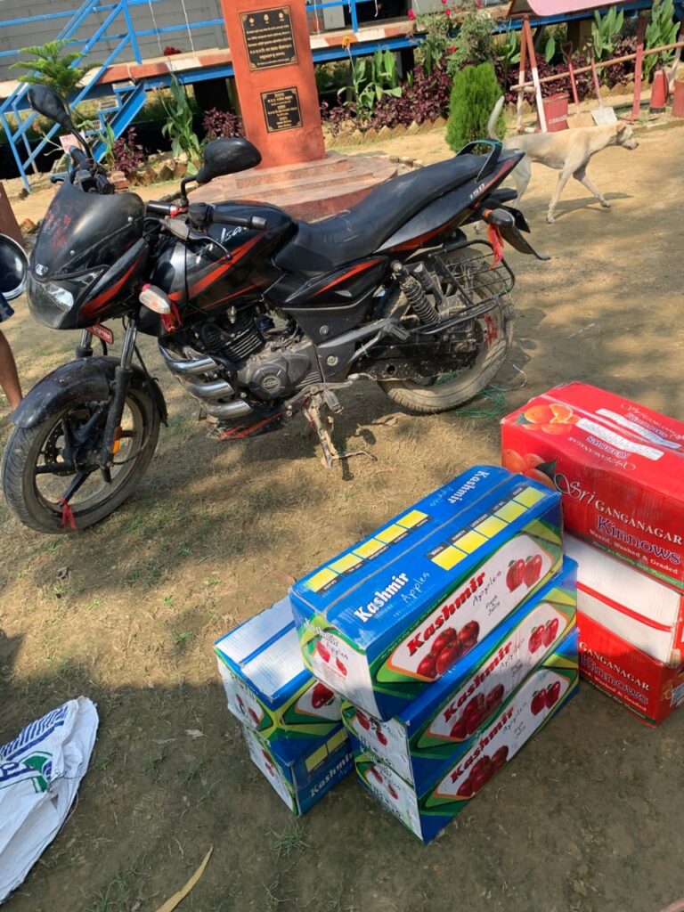 त्यसै गरि मिति २०८२।०७।o७ गते सशस्त्र प्रहरी बल,नेपाल बोर्डर आउट पोष्ट अमरपट्टीबाट खटिएको टोलिले जिल्ला पर्सा विन्दवासिनी गा.पा.-३ झौवा स्थित नेपालबाट भारत तर्फ मो.सा.मा लोड गरि लैजादै गरेको मुल्य रु. ४,२१०।- बराबरको स्याउ र उक्त कार्यमा प्रयोग भएको मुल्य रु.२,७०,०००।- बराबरको मो.सा. नियन्त्रणमा लिई आवश्यक कारवाहीको लागि बीरगंज भन्सार कार्यालयमा बुझाएको छ ।