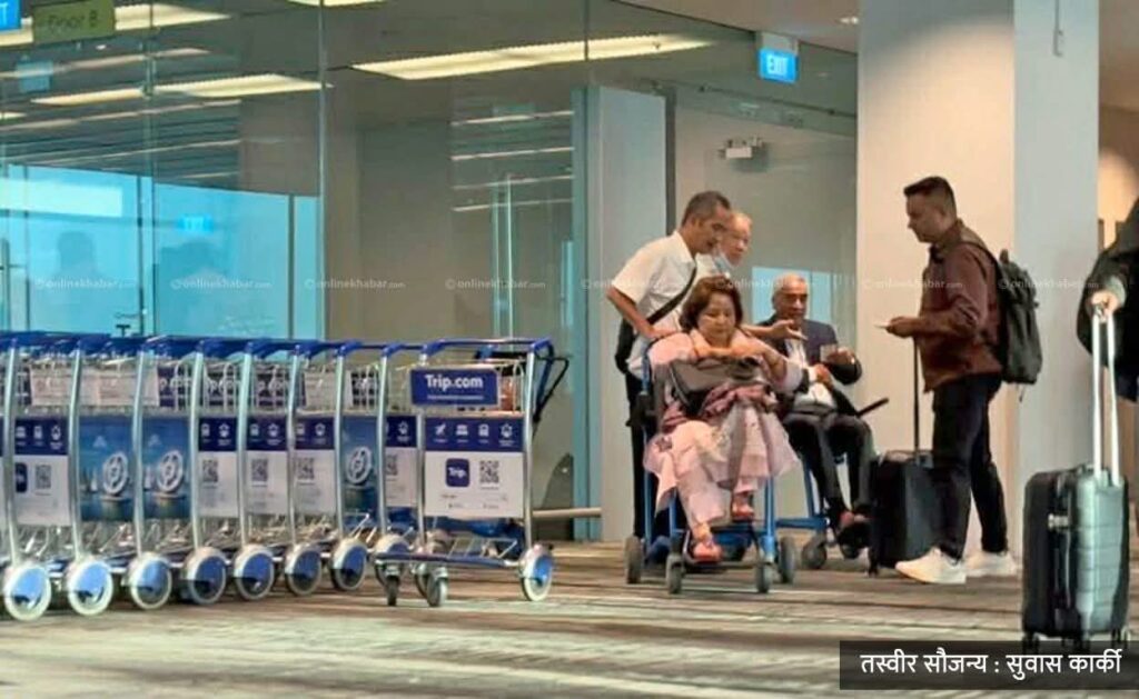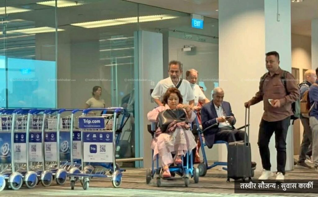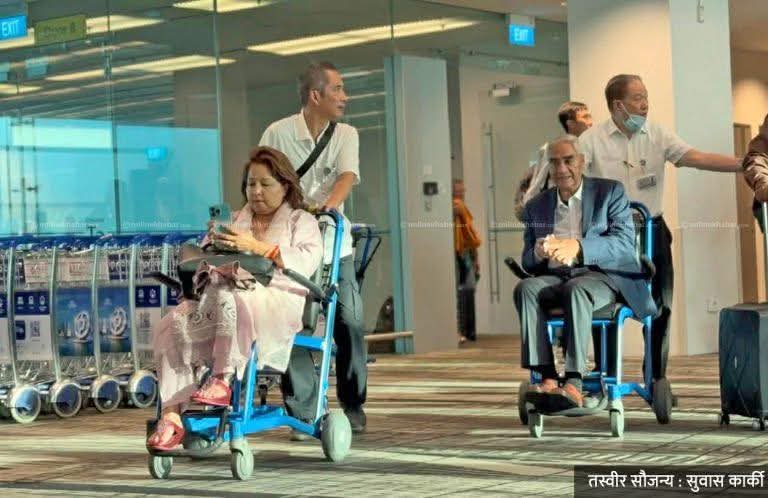 गएराति काठमाडौं अन्तर्राष्ट्रिय विमानस्थलबाट प्रस्थान गरेका उनीहरु सिंगापुरको चाङ्गी अन्तर्राष्ट्रिय विमानस्थलमा ओर्लिएका थिए । विमानस्थलबाट बाहिरिने क्रममा देउवा दम्पती ह्विलचेयरमा बसेर गएको देखिएका छन् ।