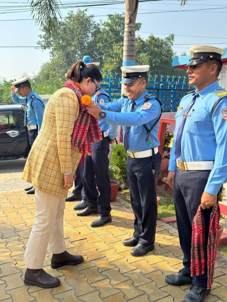 नेपाल प्रहरी प्रधान कार्यालय मानवश्रोत विकाश विभाग (कर्मचारी प्रशासन शाखा ) नक्ससाल काठमाण्डौको च.नं. २८१७ मिति २०८२।०६।२८ गतेको पत्र आदेशले यस कार्यालयमा हाजिर हुन आउनु भएका यस कार्यालयका कार्यालय प्रमुख प्रहरी निरिक्षक प्रतिमा कार्कीज्यूलाई स्वागत तथा शुभकामना कार्यक्रम सम्पन्न गरिएको छ ।