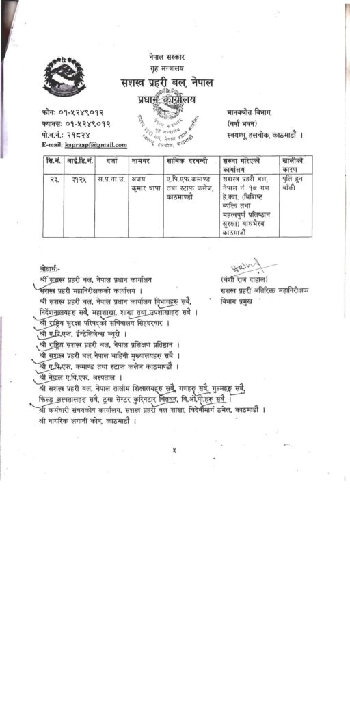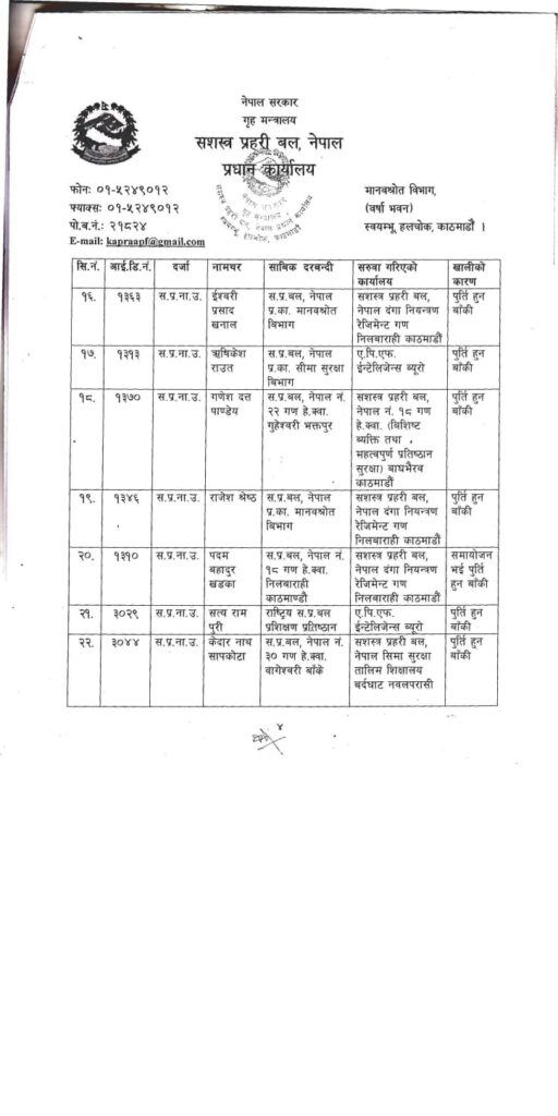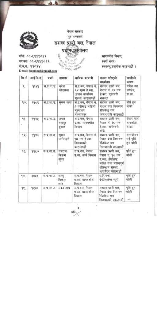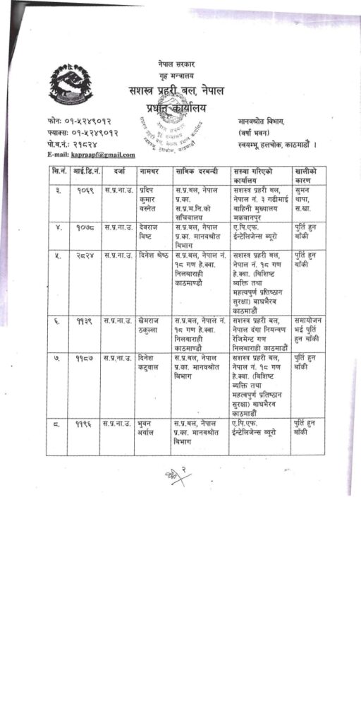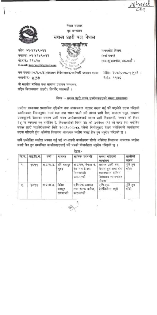 Homeप्रदेश सरकारबागमती सशस्त्र प्रहरी नायव उपरीक्षक २३ जना डीएसपीहरुको सरुवा:- मधेश प्रदेश खवर December 2, 2025 157 0 ताजा / भरखरै प्राप्त महोत्तरीको खयरबनी नाकासुरक्षा निकायकै छत्रछायाँमा तीन सातादेखि करोडौँको तस्करी: February 1, 2026 नेपाल प्रहरीद्वारा सवारी चालकहरुको लागु पदार्थ सेवन चेकजाँच सम्पन्न:- January 31, 2026 विभिन्न पार्टी परित्याग गरी सयौँ कार्यकर्ताहरू नेकपा एमाले पार्टीमा प्रवेश:- January 31, 2026 बारामा विभिन्न ठाउँबाट एकै रातमा पाँच वटा मोटरसाइकल चोरी:- January 31, 2026 बाराका विश्रामपुरमा सराहनीयकार्य दिलमोहमद मदरसालाई जग्गा प्रदान:- January 31, 2026 सशस्त्र प्रहरी बल नेपालका २३ जना सशस्त्र प्रहरी नायव उपरीक्षक डिएसपीहरुकाे सरूवा,भएको छ, काे कहाँ पुगे, । Share FacebookTwitterPinterestWhatsApp Previous articleनेपाल लाइफ इन्स्योरेन्स कम्पनीद्वारा १ करोड ५० लाख आर्थिक योग:-Next articleबारा पर्सा बाट १० जना भारतिय नागरिक नेपाली नागरिकतासहित पक्राउ:- लोकप्रिय नागरिकता विधेयक प्रमाणीकरणप्रति राजनीतिक दलबाट मिश्रित प्रतिक्रिया, विराेधमा काठमाडाैंमा प्रदर्शन बिरगंज बाट केदारनाथ दर्शन गरी ऋषिकेश जादा ट्रक ले मिनी बसमा ठोकेको छ, भारतीय मिडिया अनुसार 2 जनाको घटनास्थलमा मृत्यु भएको छ भने 8... आज २०८०,२,१५,गते – गणतन्त्र दिवस,विभिन्न कार्यक्रम आयोजना गरी देशभर मनाइँदै,! Related Articles मधेश प्रदेश खवर - February 1, 2026महोत्तरीको खयरबनी नाकासुरक्षा निकायकै छत्रछायाँमा तीन सातादेखि करोडौँको तस्करी: मधेश प्रदेश खवर - January 31, 2026नेपाल प्रहरीद्वारा सवारी चालकहरुको लागु पदार्थ सेवन चेकजाँच सम्पन्न:- मधेश प्रदेश खवर - January 31, 2026विभिन्न पार्टी परित्याग गरी सयौँ कार्यकर्ताहरू नेकपा एमाले पार्टीमा प्रवेश:-