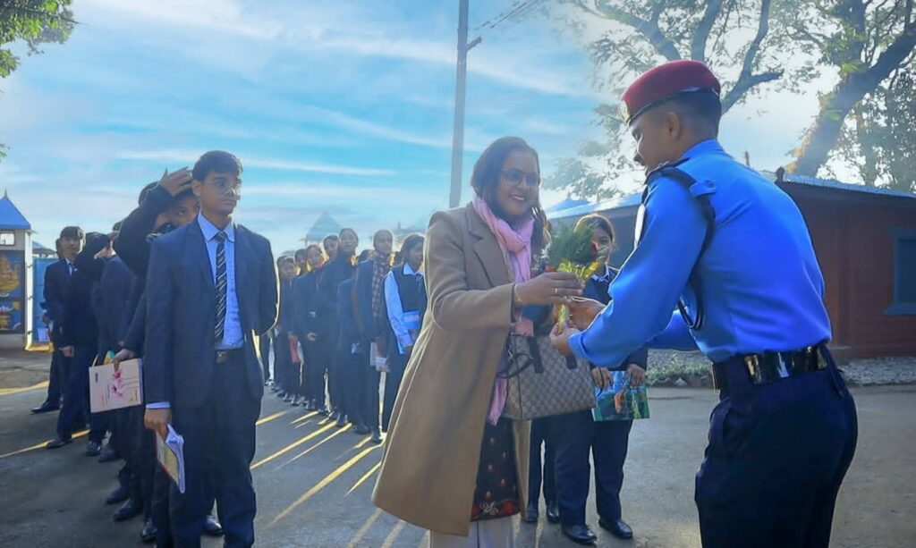 नेपाल प्रहरी शिक्षालय भरतपुर, चितवनका समादेशक प्रहरी वरिष्ठ उपरीक्षक तारा देवी थापाको प्रमुख आतिथ्यतामा Aroma English Secondary School का कक्षा १२ मा अध्ययनरत विद्यार्थीहरुको उपस्थितीमा समुदायसंग प्रहरी कार्यक्रम सम्पन्न। उक्त कार्यक्रममा विद्यार्थीहरूलाई शिक्षालयमा संचालनमा रहेको असई. आ.ता.२-१८०औं समूहको कवाज, प्रशिक्षकद्वारा बाधापार अभ्यासको नमूना अवलोकन गराइनुका साथै साइबर अपराध सम्बन्धी सचेतनामूलक प्रस्तुती समेतको कार्यक्रम सम्पन्न गरिएको थियो ।