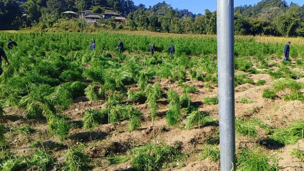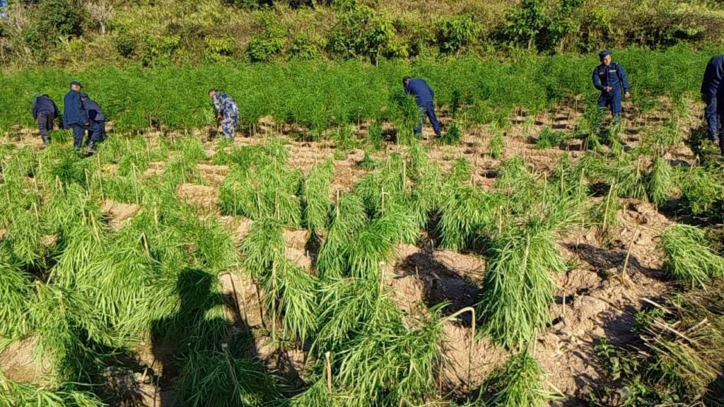 सर्लाही प्रहरीद्वारा साँढे ३ बिघा अवैध गाँजा खेती नष्ट:-