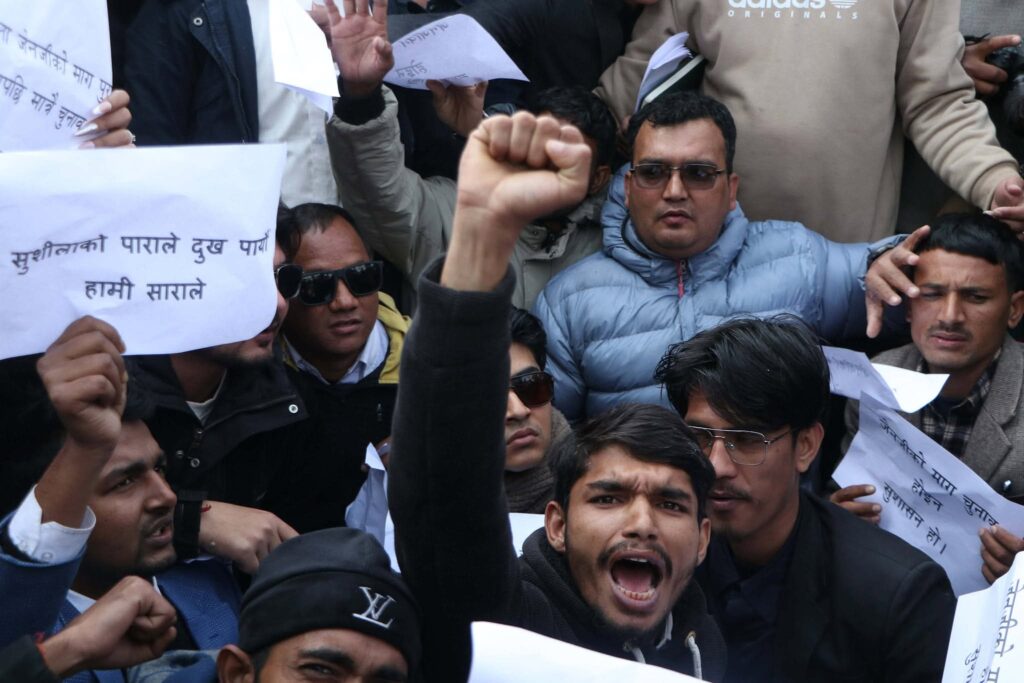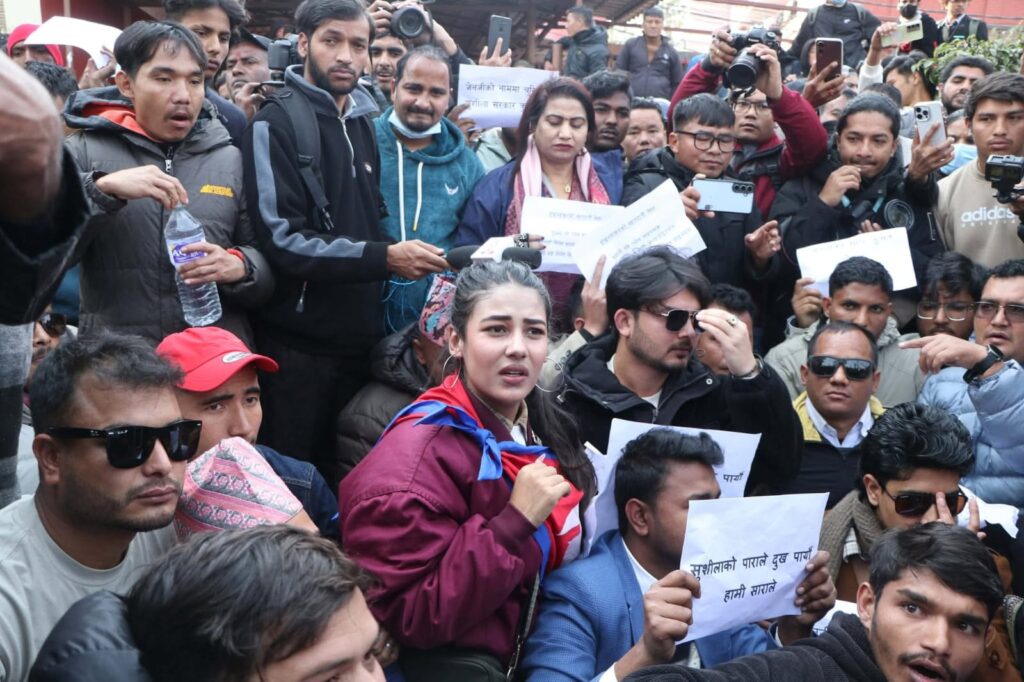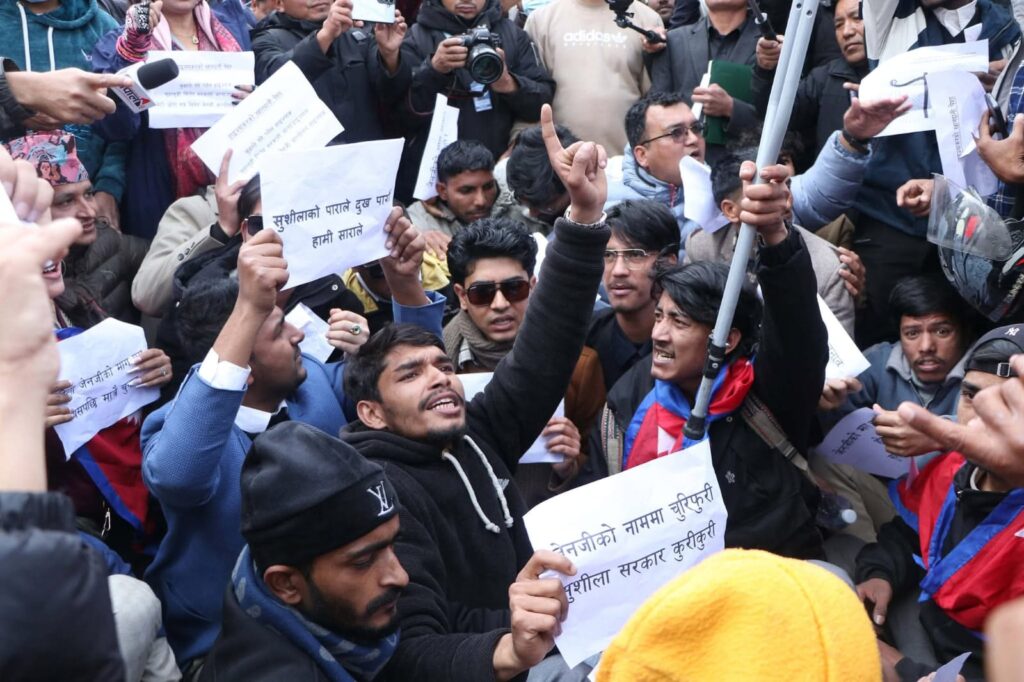 काठमाडौंको माइतीघरमा जेनजीका ढुंगाना समुहद्वारा प्रदर्शन:-