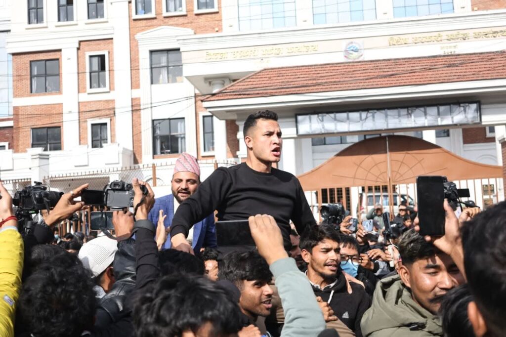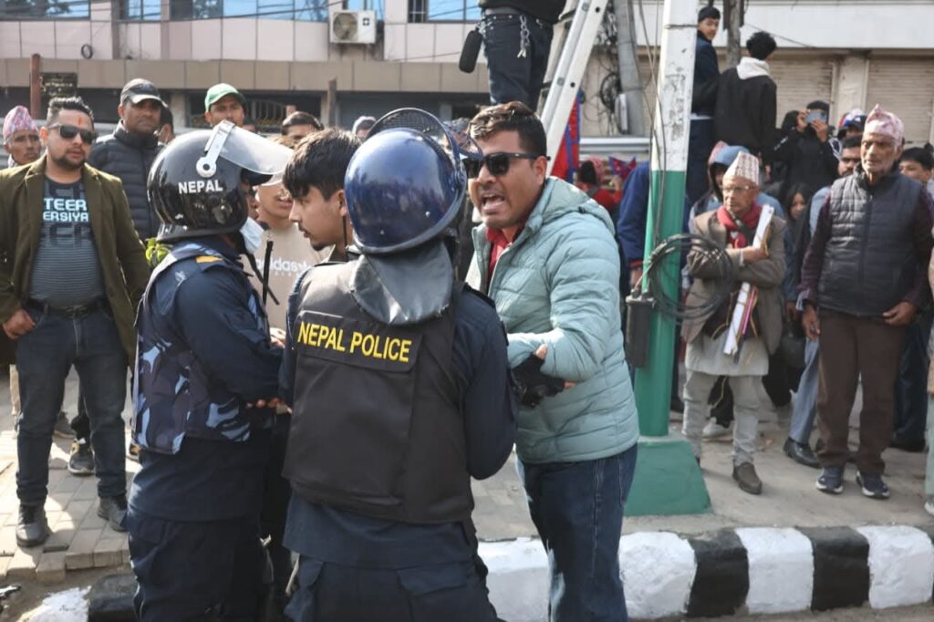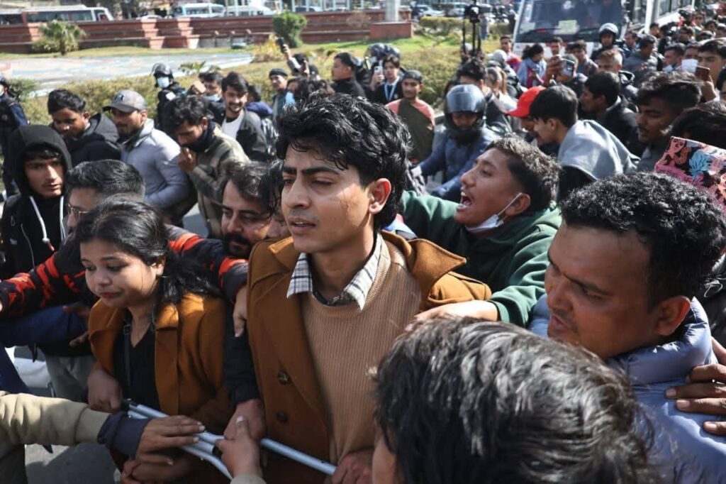 Homeप्रदेश सरकारबागमती काठमाडौंको माइतीघरमा जेनजीहरूको प्रदर्शनका दृश्यहरू:- मधेश प्रदेश खवर December 22, 2025 193 0 ताजा / भरखरै प्राप्त ठेकेदार हरिनारायण र पप्पु कन्स्ट्रक्सनविरुद्ध हरपतगञ्जका बासिन्दाहरुको आक्रोश :- April 28, 2026 यो तस्बिरले धेरै कुरा बोल्छ, जुन शब्दमा व्यक्त गर्न सकिँदैन:- April 28, 2026 तलब नपाएको छिपहरमाई गाउँपालिकाका कर्मचारीले गरे तला बन्दि:- April 27, 2026 सशस्त्र प्रहरीको महानिरीक्षकपदमा नारायणदत्त पौडेल नियुक्त:- April 27, 2026 भन्सार छली गरी ल्याइँदै गरेको सामान बारा प्रहरीको नियन्त्रणमा:- April 26, 2026 जेनजी प्रदर्शनका क्रममा सरकारको राजीनामा माग्दैकाठमाडौंको माइतीघरमा प्रदर्शनमा उत्रिएका जेनजीहरुलाई प्रहरीले भ्यानमा हाल्न थालेपछि जेनजीका नेता मिराज ढुंगाना लगायत भद्रकाली प्रहरी परिसरतिर लागेको बताइएको छ । Share FacebookTwitterPinterestWhatsApp Previous articleनेपाल प्रहरीको मनसाय कसैलाई दुख्य पुर्याउने होइन:-Next articleपर्साका प्रहरीद्वारा हरैयाको भलुवाहिमा अवैध गाँजा फडानी:- लोकप्रिय नागरिकता विधेयक प्रमाणीकरणप्रति राजनीतिक दलबाट मिश्रित प्रतिक्रिया, विराेधमा काठमाडाैंमा प्रदर्शन बिरगंज बाट केदारनाथ दर्शन गरी ऋषिकेश जादा ट्रक ले मिनी बसमा ठोकेको छ, भारतीय मिडिया अनुसार 2 जनाको घटनास्थलमा मृत्यु भएको छ भने 8... आज २०८०,२,१५,गते – गणतन्त्र दिवस,विभिन्न कार्यक्रम आयोजना गरी देशभर मनाइँदै,! Related Articles मधेश प्रदेश खवर - April 28, 2026ठेकेदार हरिनारायण र पप्पु कन्स्ट्रक्सनविरुद्ध हरपतगञ्जका बासिन्दाहरुको आक्रोश :- मधेश प्रदेश खवर - April 28, 2026यो तस्बिरले धेरै कुरा बोल्छ, जुन शब्दमा व्यक्त गर्न सकिँदैन:- मधेश प्रदेश खवर - April 27, 2026तलब नपाएको छिपहरमाई गाउँपालिकाका कर्मचारीले गरे तला बन्दि:-