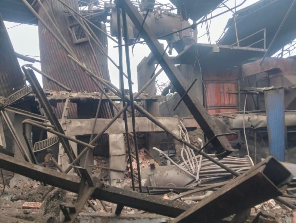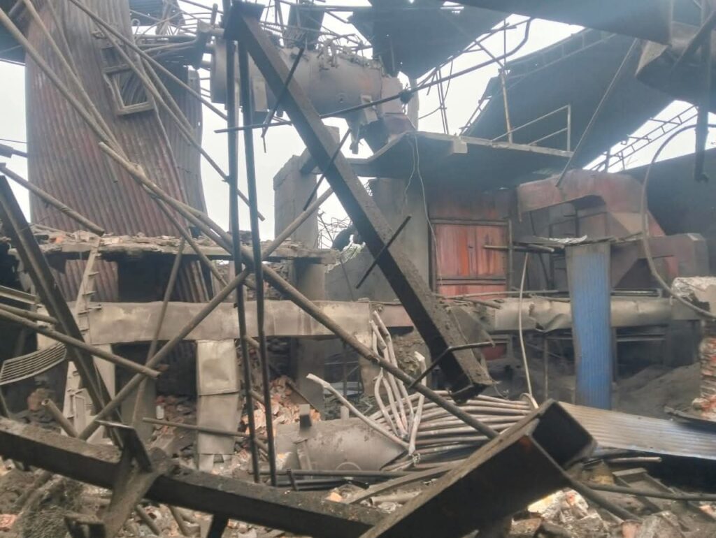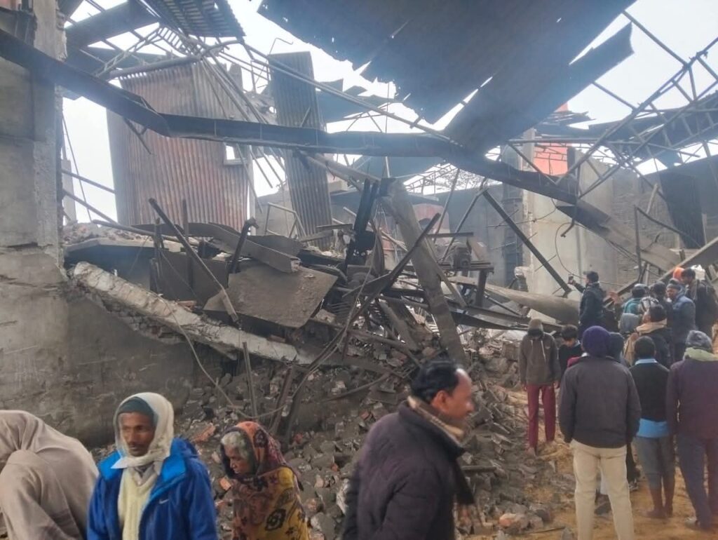 राैतहट जिल्लाको कटहरिया नगरपालिका वडा नम्बर ९ मा रहेको ज्योति डिष्टलरीमा भयानक विस्पोट पछिको दृश्य ।