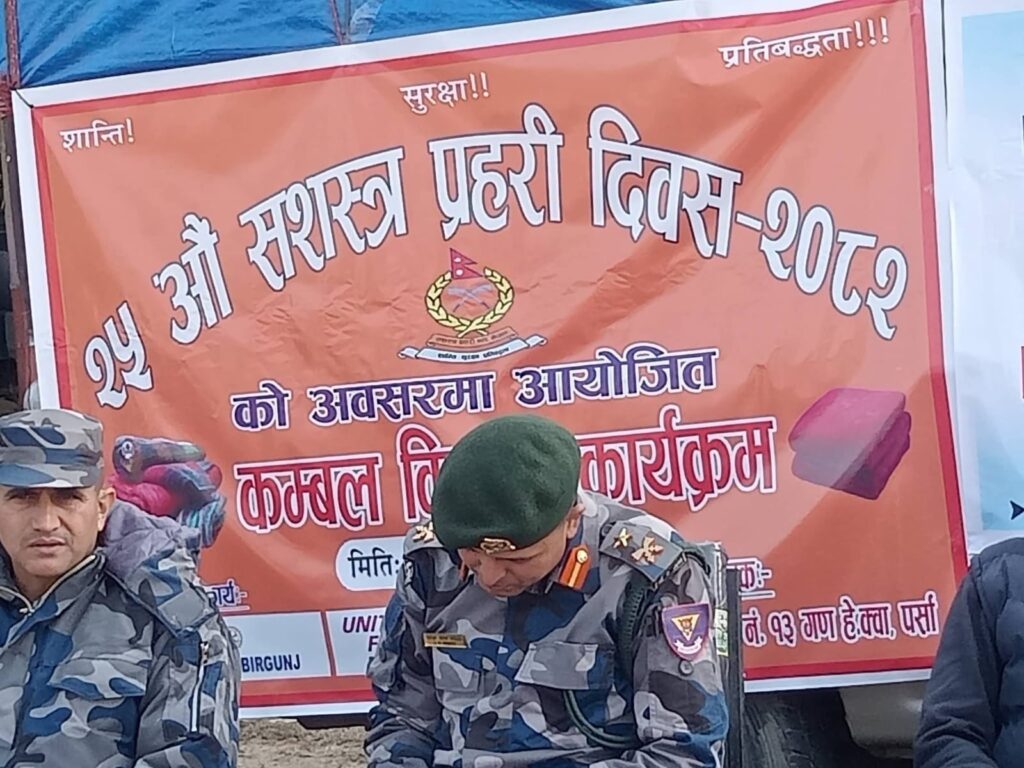 २५ औं सशस्त्र प्रहरी दिवस २०८२ को अवसरमा आयोजित कार्यक्रममा कम्बल वितरण गरिएको सशस्त्र प्रहरी पर्साले जनाएको छ ।