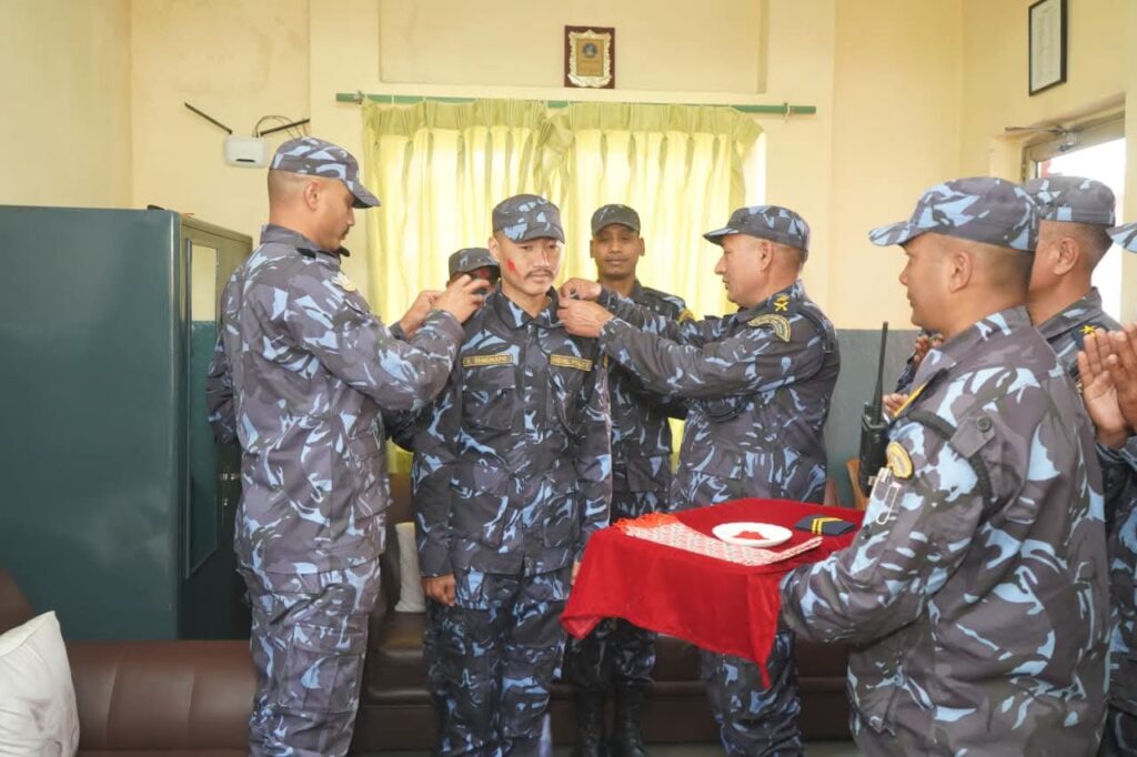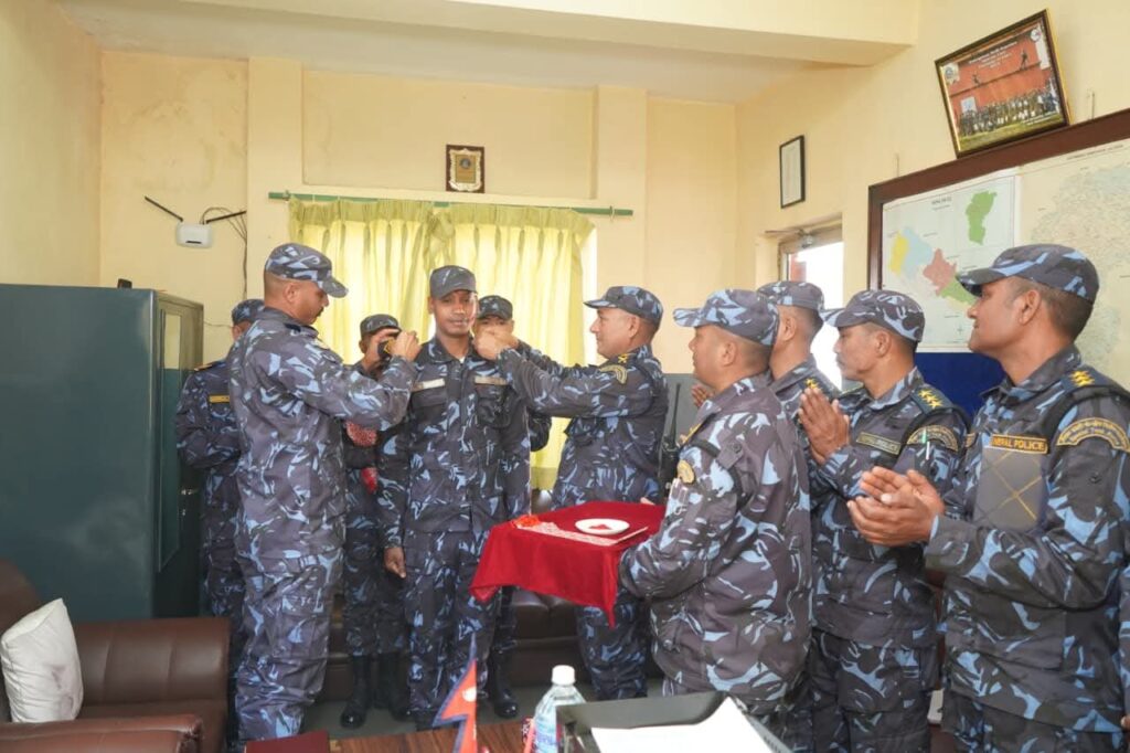नेपाल प्रहरी प्रधान कार्यालय, मानवश्रोत विकास विभाग, कर्मचारी प्रशासन शाखा, नक्साल काठमाण्डौको विभिन्न मितिको पत्रले प्रहरी हवल्दार पदबाट प्रहरी वरिष्ठ हवल्दार पदमा, प्रहरी सहायक हवल्दार पदबाट प्रहरी हवल्दार पदमा र प्रहरी जवान पदबाट प्रहरी सहायक हवल्दार पदमा पदोन्नति भई यस कार्यालय पदस्थापन भएका प्रहरी वरिष्ठ हवल्दार खडक बहादुर श्रेष्ठ, प्रहरी हवल्दार संजय कुमार सहनी, प्रहरी सहायक हवल्दार विशाल तंनामी र खडक बहादुर थनेतलाई, प्रहरी उपरीक्षक (एसपी) चक्रराज जोशीको प्रमुख आतिथ्यतामा दर्ज्यानी चिन्हद्वारा सुसोभन कार्यक्रम सम्पन्न भएको छ ।