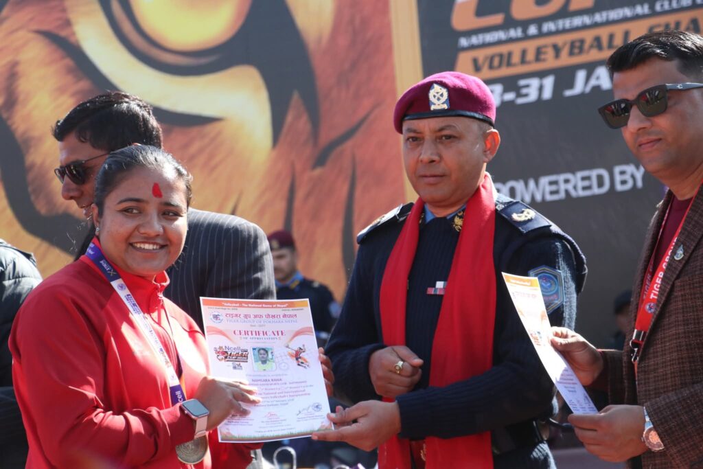 नेपाल प्रहरी प्रमुखले विजेता तथा उपविजेता टिम भलिबल खेलाडीहरूलाई हार्दिक बधाई तथा थप सफलताको शुभकामना समेत दिएको छन् ।