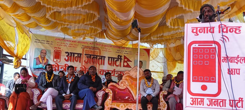 गढीमाईलाई विश्वसम्पदा सूचीकरण र सिम्रौनगढ नगरलााई संरक्षणको प्रतिबद्धता: आगामी फागुन २१ गते हुने प्रतिनिधि सभा सदस्य निर्वाचनलाई लक्षित गर्दै आम जनता पार्टीको क्षेत्रीय भेला कार्यक्रम आज बाराको गँजभवानिपुरमा सम्पन्न भएको छ । कार्यक्रम आम जनता पार्टी क्षेत्रीय अध्यक्ष सियाराम जयस्वालको अध्यक्षतामा सम्पन्न भएको हो।