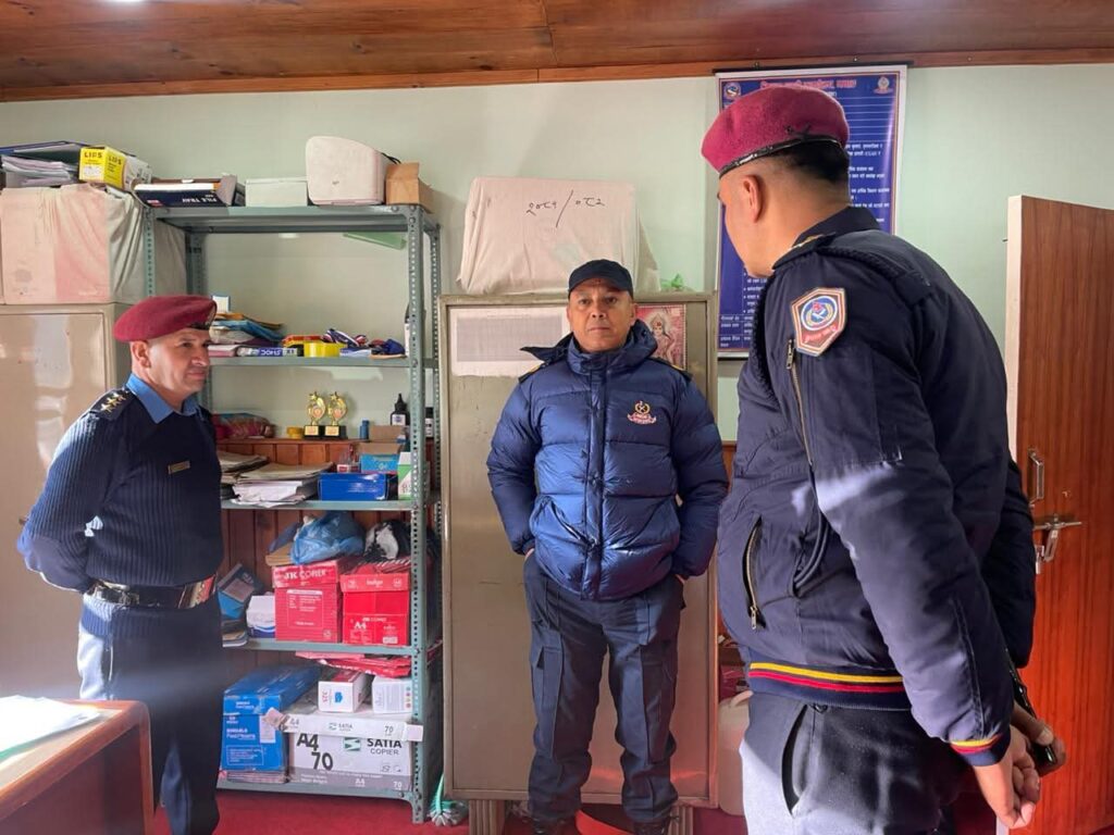 डीआईजी जि.सी.ले निरीक्षणका क्रममा प्रहरी कार्यालयमा भएका संरचनात्मक व्यवस्थापन, उपकरण तथा स्रोत साधनको उपलब्धता, र प्रहरी कर्मचारीहरूको पेशागत व्यवहारको विस्तृत अध्ययन गर्नु भएको थियो।