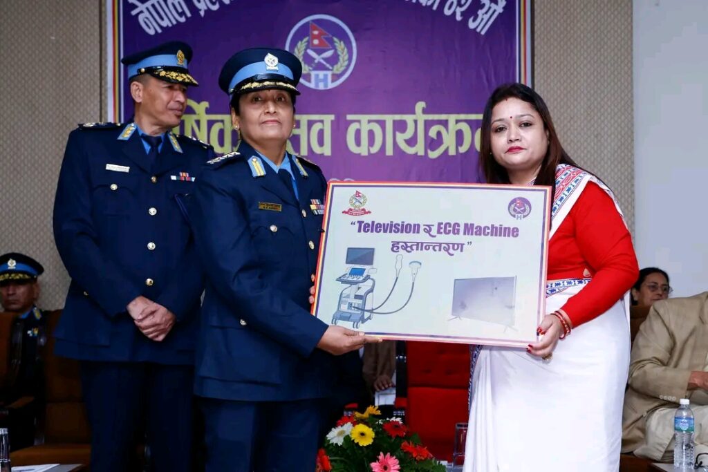 कार्यक्रममा नेपाल प्रहरी श्रीमती संघको तर्फबाट संघकी अध्यक्ष श्रीमती नविना कार्कीले टिभि र ईसिजि मेसिन अस्पतालका प्राविधिक प्रहरी वरिष्ठ उपरीक्षक भीम कुमारी पाण्डेलाई हस्तान्तरण गर्नुभयो । साथै संघकी अध्यक्ष तथा पदाधिकारीहरूले अस्पतालमा उपचाररत बिरामीहरूलाई फलफूल समेत वितरण गर्नुभएको थियो ।