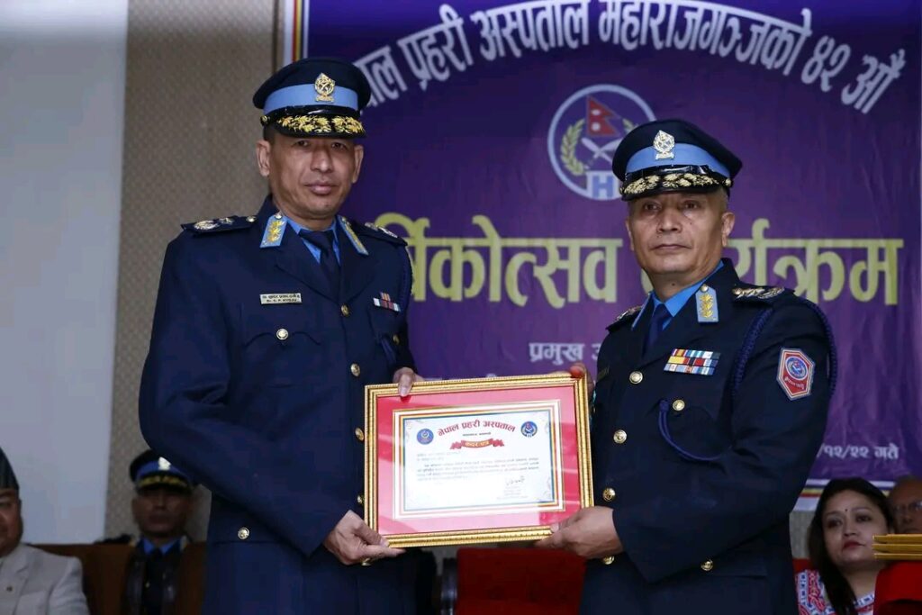 प्रहरी प्रमुख प्रहरी महानिरीक्षक (आजीपी)दान बहादुर कार्कीको प्रमुख आतिथ्यतामा आज,आइतबार आयोजित कार्यक्रमबीच नेपाल प्रहरी अस्पताल महाराजगंजको ४२ औं वार्षिकोत्सव समारोह सम्पन्न भएको जनाइएको छ ।