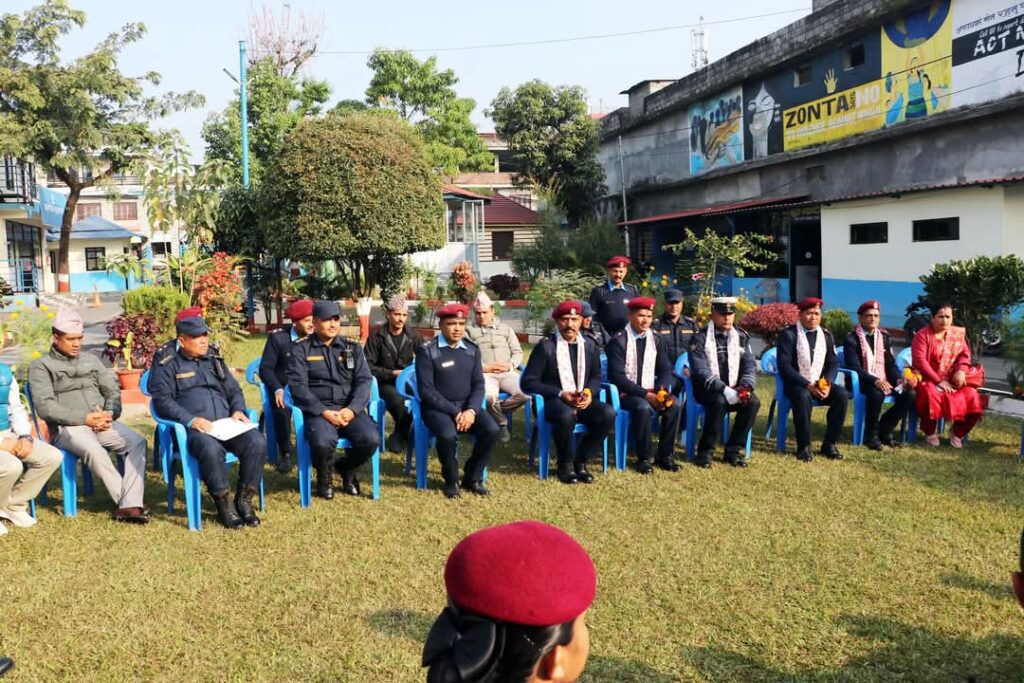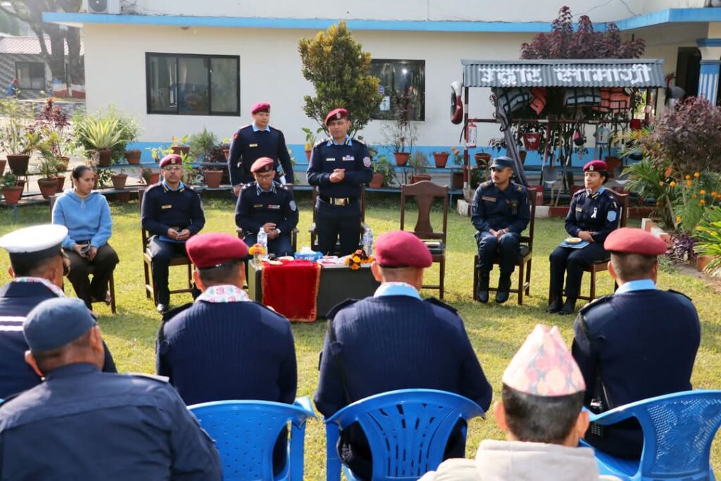 तथा पदस्थापन हुनु भएका यस कार्यालय मातहतमा कार्यरत प्रहरी कर्मचारीहरु प्र.स.नि. कुल बहादुर खत्री, प्र.स.नि. कृष्ण बहादुर गुरुङ, प्र.स.नि. प्रकाश चौधरी, प्र.स.नि. थानेश्वर खनाल, प्र.स.नि. आशिस क्षेत्री, प्र.स.नि. खिम बहादुर कार्की, प्र.स.नि. श्याम बहादुर कुमाललाई यस कार्यालय प्रमुख प्रहरी उपरीक्षक श्याम बाबु ओलियाको प्रमुख आतिथ्यतामा दर्ज्यानी चिन्ह सुशोभन तथा निर्देशन सम्बोधन