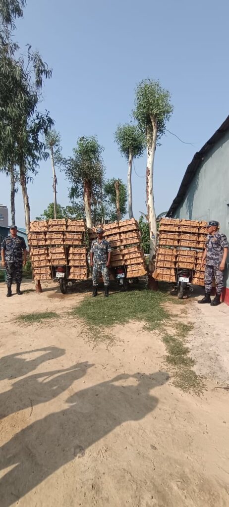 सशस्त्र प्रहरी बल नेपाल नं १३ गण हे.क्वा. पर्साबाट खटिएको टोलिले पर्सा जिल्लाको बहुदरमाई नगरपालिका – ५ डकैला बहुअरी चोकबाट भारतबाट अबैध रुपमा चोरी पैठारी गरी ३ वटा भारतिय नं. प्लेटको मोटरसाइकल लोड गरी नेपाल तर्फ ल्याउदै गरेको ७५ काटुन ( ७५०० गोटा ) प्रतिबन्धित ब्रोईलर कुखुराको चल्ला नियन्त्रणमा लिई आवश्यक प्रक्रिया पुरा गरी स्थानीय जन प्रतिनिधी, तथा संचारकर्मी र क्वारेनटाईन कार्यालयका प्रतिनिधिहरुको रोहरबरमा पर्साका बिरगंज नं.१३ गण परिसर भित्र नष्ट गरिएको र उक्त चल्ला पैठारी कार्यमा प्रयोग भएका तिनवटा मोटरसाइकल आवश्यक कारवाहिका लागि बीरगंज भन्सार कार्यालयमा बुझाउने प्रकियामा रहेको सशस्त्र प्रहरी पर्साले जनाएको छ ।