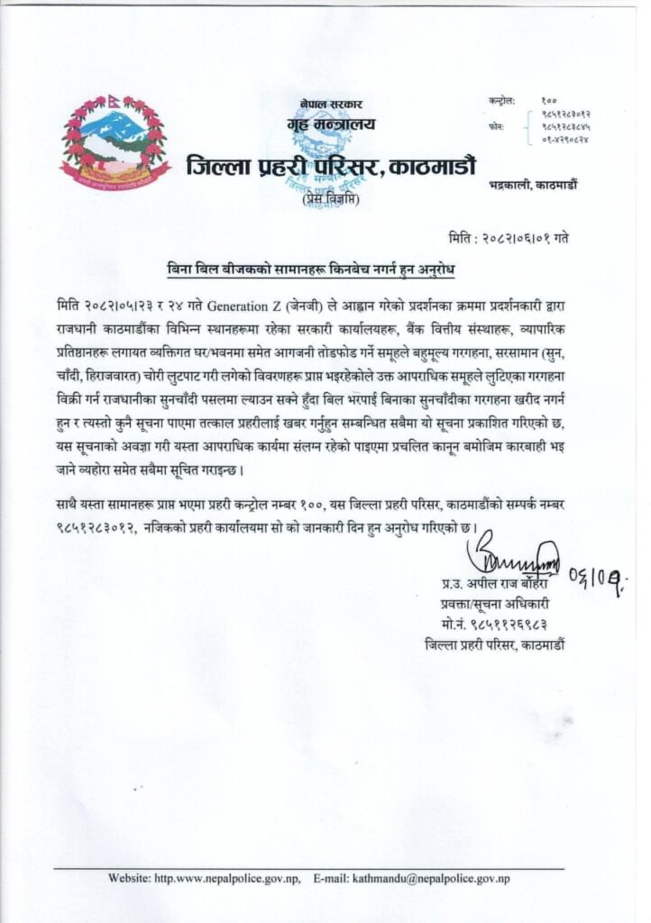 Homeप्रदेश सरकारबागमती मधेश प्रदेश खवर September 17, 2025 181 0 ताजा / भरखरै प्राप्त झापा जिल्लामा सेना, सशस्त्र, र प्रहरीहरुको संयुक्त गस्ती:- February 26, 2026 प्रतिनिधि सभा सदस्य निर्वाचनको लागी खटीजाने प्रहरी हरुलाई निर्देशन:- February 26, 2026 आजदेखि मादक पदार्थ बिक्री-वितरण तथा सेवनमा प्रतिबन्ध:- February 26, 2026 जसपा उम्मेदवार रामनरेश यादवप्रति बढ्दो जनआकर्षण,घर-घरमा चुनावी चर्चा तीव्र:- February 26, 2026 पर्सा–१ मा जसपा उम्मेदवार रामनरेश यादवप्रति बढ्दो जनआकर्षण, घर–घरमा चुनावी चर्चा तीव्रपर्सा :- February 26, 2026 Share FacebookTwitterPinterestWhatsApp Previous articleचितवनमा तोडफोड र आगजनी गर्नेहरुलाई खोज्दै प्रहरी:-Next articleकैलाली कारागारबाट भागेका २२६ कैदीबन्दी कारागार फर्किए:- लोकप्रिय नागरिकता विधेयक प्रमाणीकरणप्रति राजनीतिक दलबाट मिश्रित प्रतिक्रिया, विराेधमा काठमाडाैंमा प्रदर्शन बिरगंज बाट केदारनाथ दर्शन गरी ऋषिकेश जादा ट्रक ले मिनी बसमा ठोकेको छ, भारतीय मिडिया अनुसार 2 जनाको घटनास्थलमा मृत्यु भएको छ भने 8... आज २०८०,२,१५,गते – गणतन्त्र दिवस,विभिन्न कार्यक्रम आयोजना गरी देशभर मनाइँदै,! Related Articles मधेश प्रदेश खवर - February 26, 2026झापा जिल्लामा सेना, सशस्त्र, र प्रहरीहरुको संयुक्त गस्ती:- मधेश प्रदेश खवर - February 26, 2026प्रतिनिधि सभा सदस्य निर्वाचनको लागी खटीजाने प्रहरी हरुलाई निर्देशन:- मधेश प्रदेश खवर - February 26, 2026आजदेखि मादक पदार्थ बिक्री-वितरण तथा सेवनमा प्रतिबन्ध:-