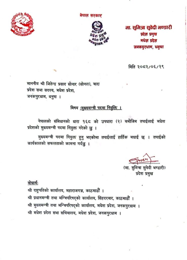 Homeप्रदेश सरकारमधेश मधेश प्रदेश सरकारको मुख्यमन्त्रीमा जितेन्द्र सोनल नियुक्त:- मधेश प्रदेश खवर October 15, 2025 30 0 ताजा / भरखरै प्राप्त विपिन जोशीको सम्झनामा युवाहरुद्वारा माइतीघरमा द्वीप प्रज्वलन:- October 15, 2025 शुभ-दीपावलीको अवसरमा वडा स्तरीय क्रिकेट प्रतियोगिता सुरु:- October 15, 2025 मनकामना माध्यमिक विद्यालयमा ५००,लाई हैजाविरुद्ध खोप खुवाइयो:- October 15, 2025 राैतहटको बरहावा तालमा हाम फाल्ने युवकको शव भेटियो:- October 15, 2025 “७० औं प्रहरी दिवस २०८२” को अवसरमा “नागरिक प्रहरी सहकार्य : सुरक्षाको लागि अपरिहार्य” भन्ने मूल नाराका साथ जिल्ला प्रहरी कार्यालय, सर्लाही तथा मातहतका... October 15, 2025 Share FacebookTwitterPinterestWhatsApp Previous articleविपिन जोशीको सम्झनामा युवाहरुद्वारा माइतीघरमा द्वीप प्रज्वलन:- लोकप्रिय नागरिकता विधेयक प्रमाणीकरणप्रति राजनीतिक दलबाट मिश्रित प्रतिक्रिया, विराेधमा काठमाडाैंमा प्रदर्शन बिरगंज बाट केदारनाथ दर्शन गरी ऋषिकेश जादा ट्रक ले मिनी बसमा ठोकेको छ, भारतीय मिडिया अनुसार 2 जनाको घटनास्थलमा मृत्यु भएको छ भने 8... आज २०८०,२,१५,गते – गणतन्त्र दिवस,विभिन्न कार्यक्रम आयोजना गरी देशभर मनाइँदै,! Related Articles मधेश प्रदेश खवर - October 15, 2025विपिन जोशीको सम्झनामा युवाहरुद्वारा माइतीघरमा द्वीप प्रज्वलन:- मधेश प्रदेश खवर - October 15, 2025शुभ-दीपावलीको अवसरमा वडा स्तरीय क्रिकेट प्रतियोगिता सुरु:- मधेश प्रदेश खवर - October 15, 2025मनकामना माध्यमिक विद्यालयमा ५००,लाई हैजाविरुद्ध खोप खुवाइयो:-