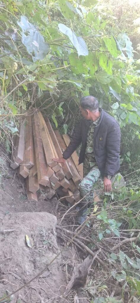 कैलालीको चुरे क्षेत्रमा ठूलो परिमाणमा सालको चिरान गरिएको काठ बरामद:-