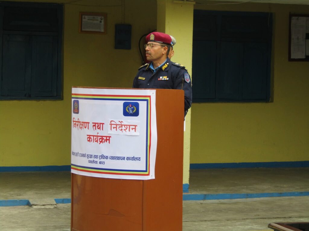 निरीक्षण सिलसिलामा बाराका ट्राफिक प्रहरी कार्यालयमा पाल्नु भई यस कार्यालयमा कार्यारत प्रहरी कर्मचारी, जिल्ला ट्राफिक प्रहरी कार्यालय निजगढ बाराका कार्यालय प्रमुख तथा मातहत ईकाईहरुमा कार्यरत ट्राफिक प्रहरी कर्मचारीहरुलाई सवारी दुर्घटना न्यूनिकरण गर्न, २०८२ सालमा सम्पन्न हुन गईरहेको आसन्न निर्वाचनलाई शान्तीपुर्ण तरिकाले सम्पन्न गराउने, आफ्नो मातहत कार्यरत प्रहरी कर्मचारीहरुको बारेमा जानकारी लिने, शुन्य सहनशिलताको अवधारणा अनुरुप काम कारवाही गर्ने ब्रिफिङ्गमा निर्देशन दिएको छन् ।